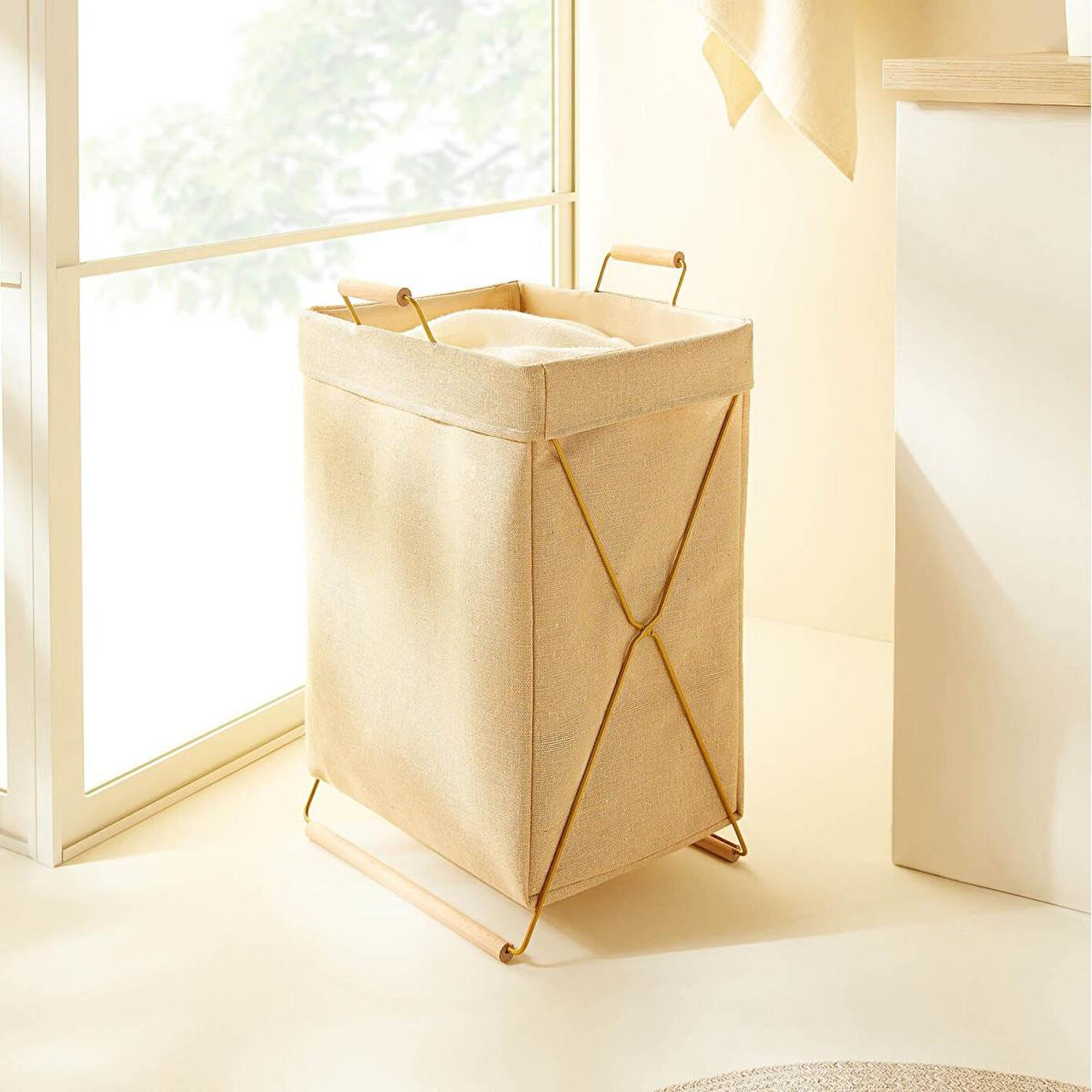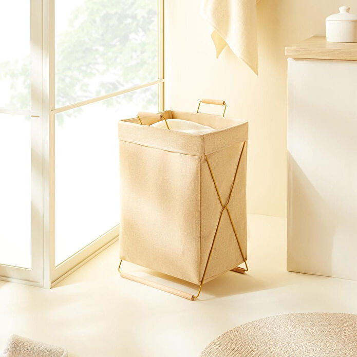 Ocean Home Textile Katlanabilir Metal Destekli Altın Renk Jüt Keten Çamaşır Sepeti Özellikleri