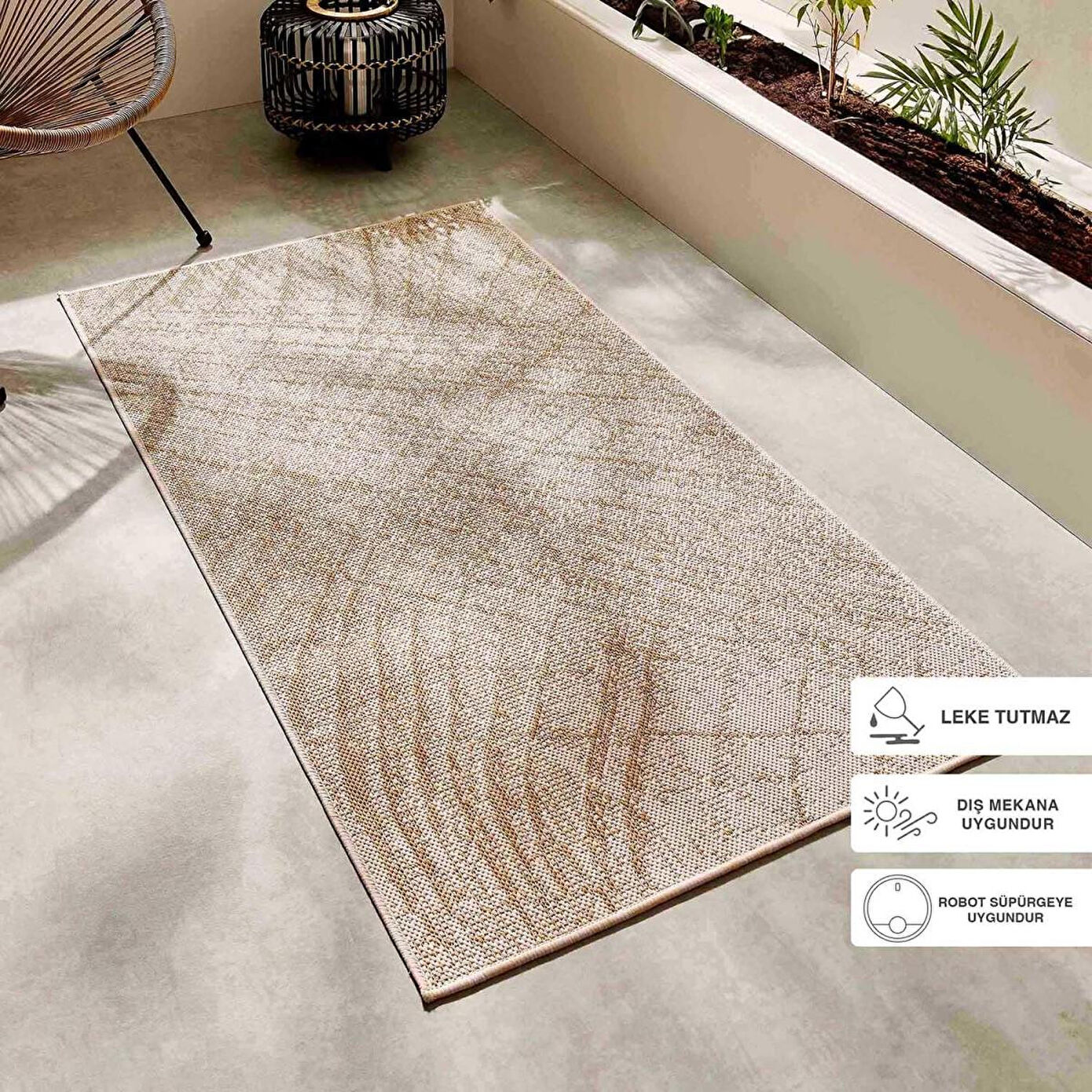 Ocean Home Textile Leke Tutmaz İç Dış Mekan Bej Renk Desenli Halı Kilim 80 X 150 Cm