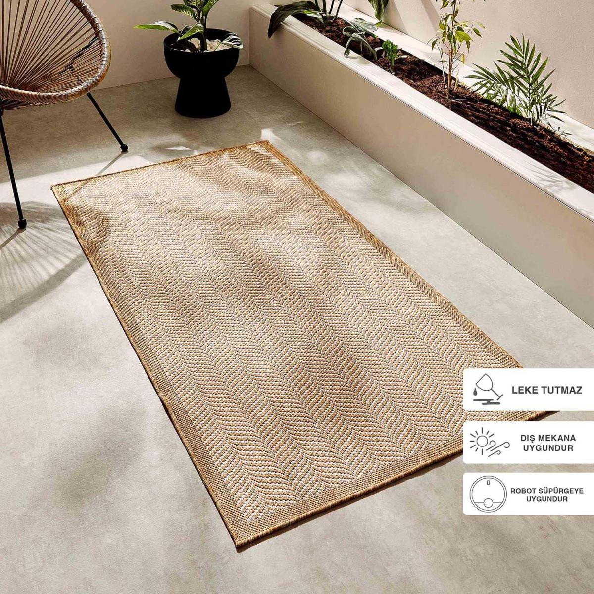Ocean Home Textile Leke Tutmaz İç Dış Mekan Bej Renk Balıksırtı Halı Kilim 80 X 150 Cm