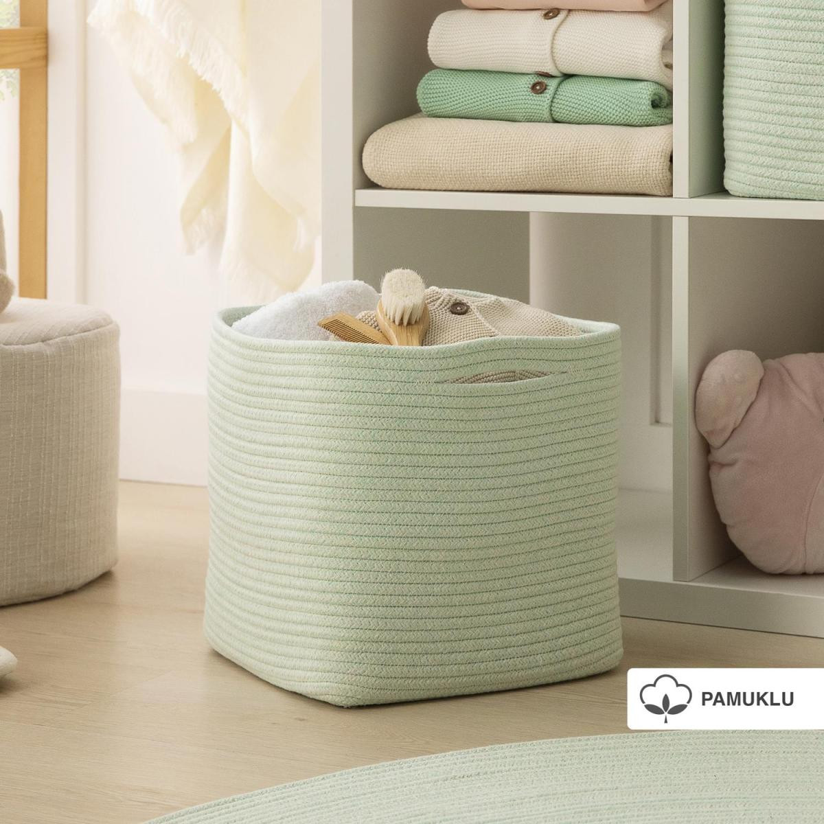 Ocean Home Textile Mint Kırçıllı Pamuklu Sepet 30 X 30 X 30 Cm