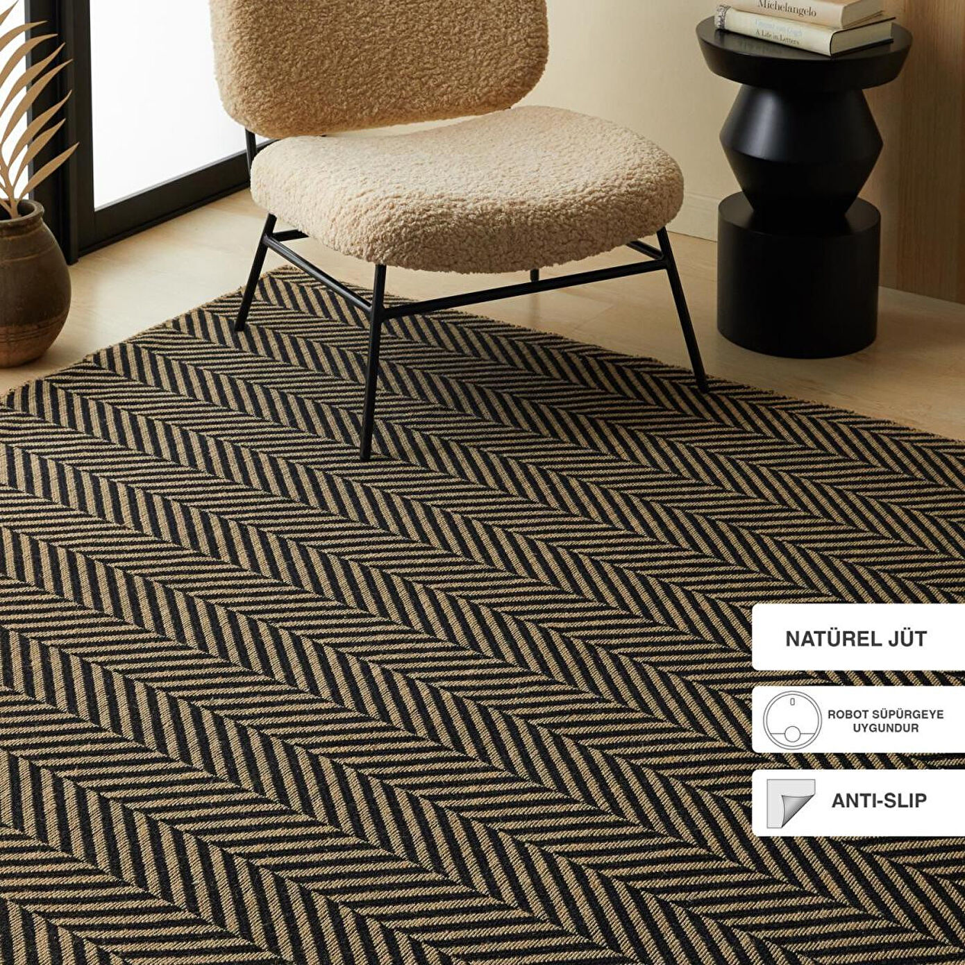 Ocean Home Textile Siyah Renk Balıksırtı Jüt Halı Kilim Özellikleri