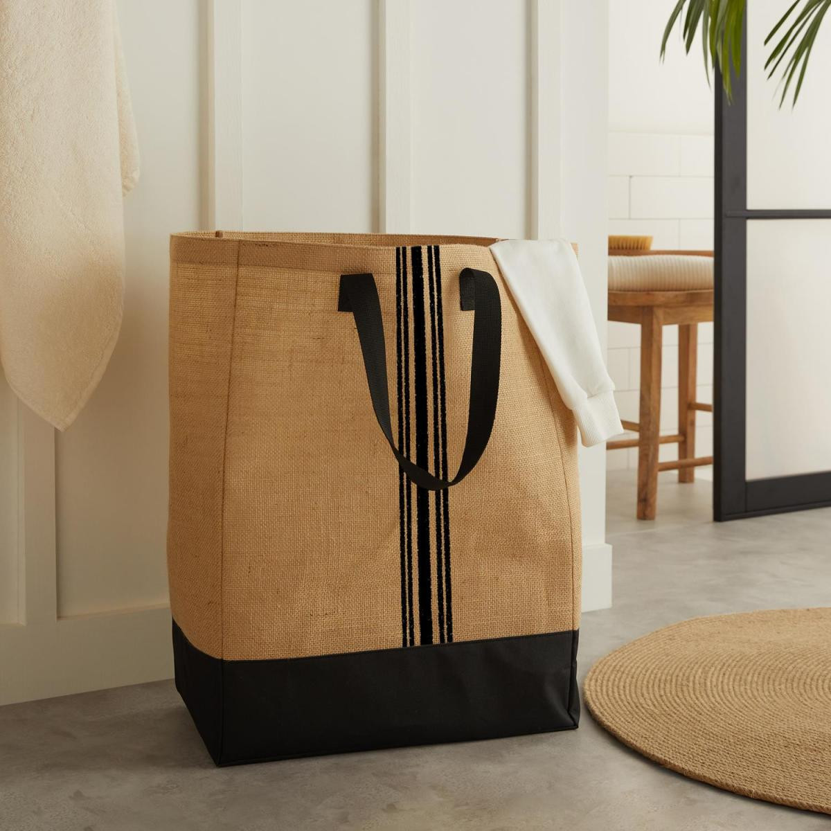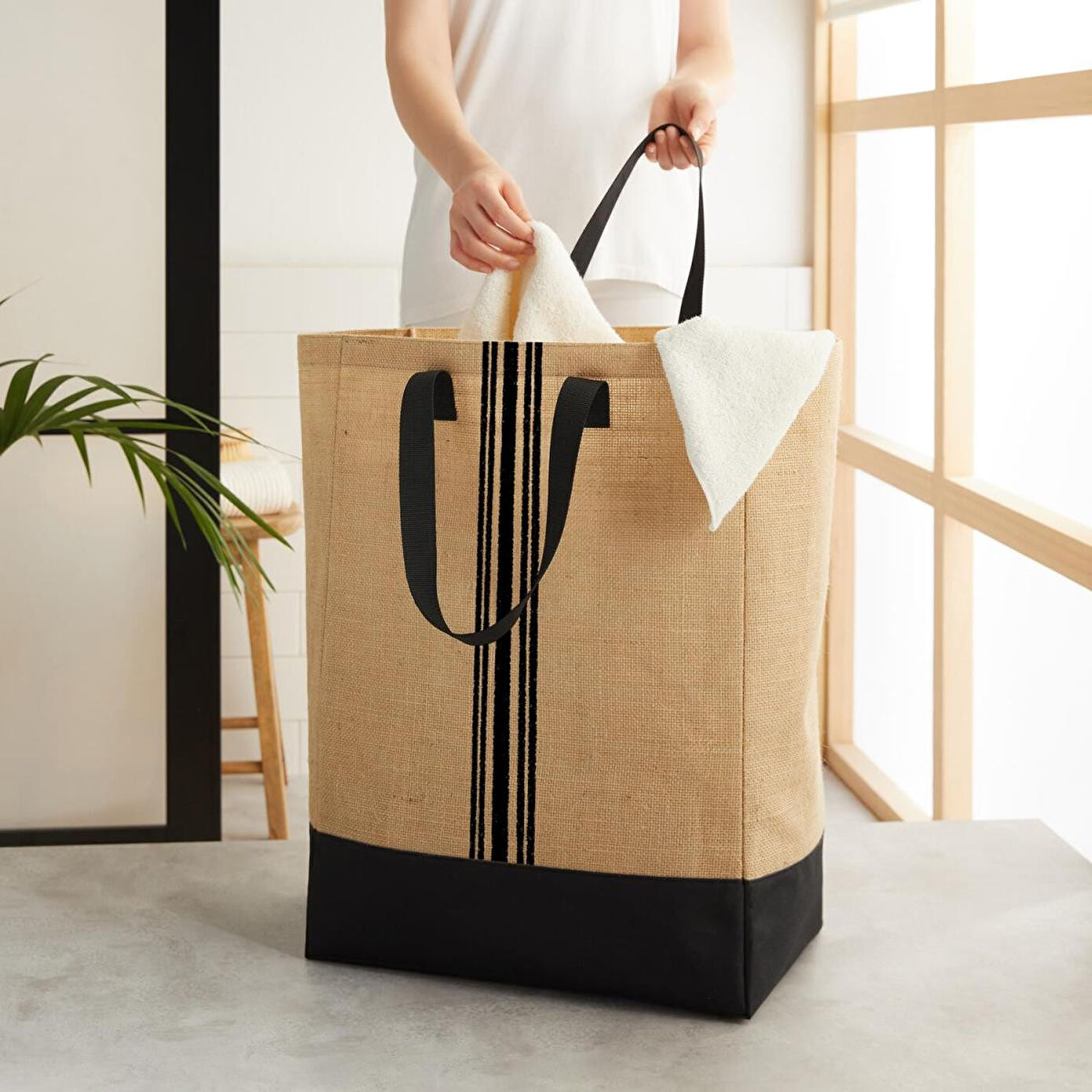 Ocean Home Textile Su Geçirmez Tabanlı Çizgili Jüt Çanta 40 X 25 X 55 Cm