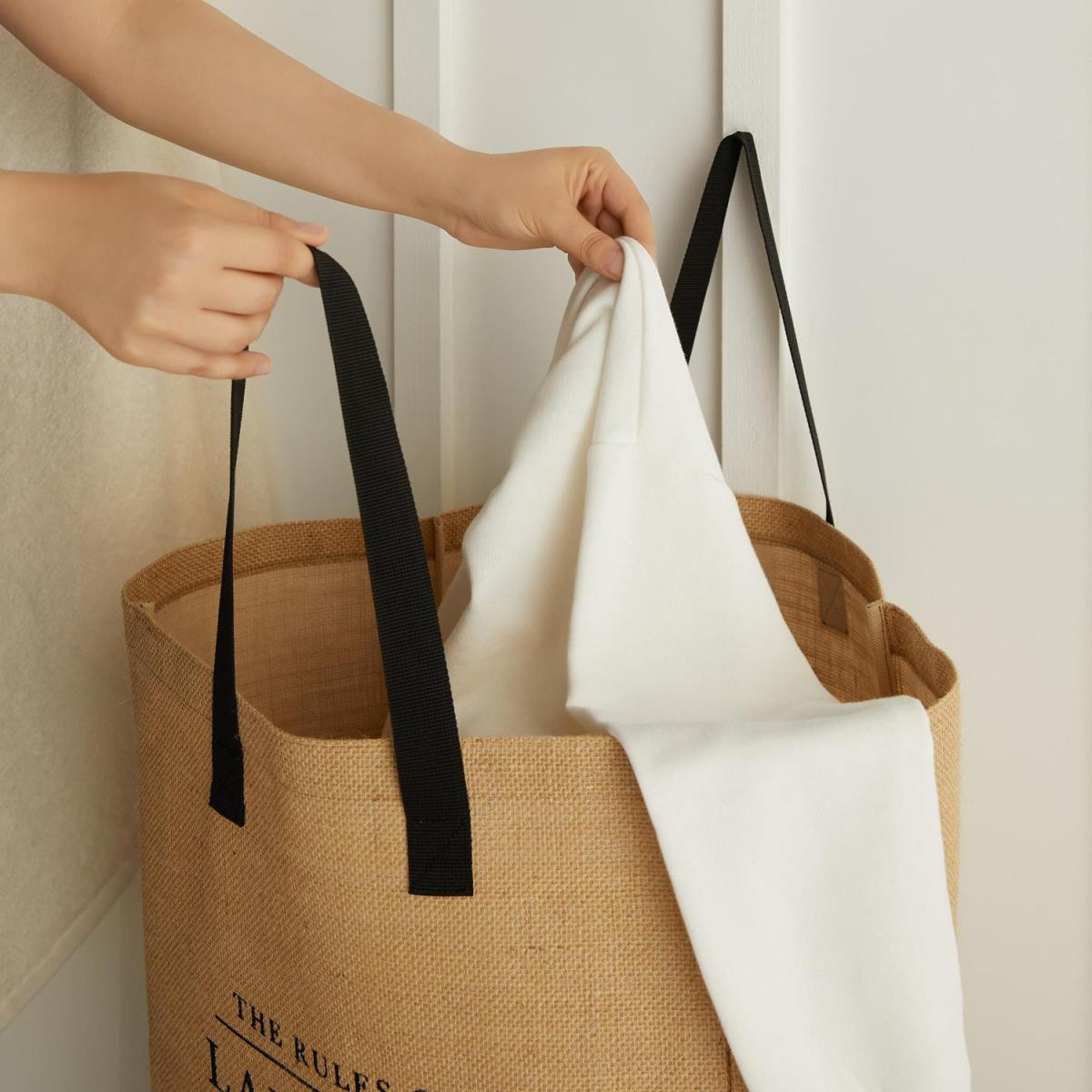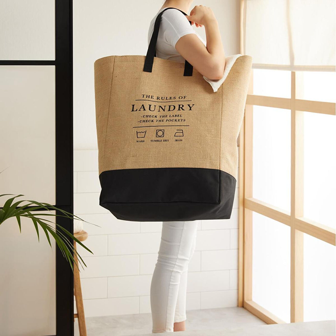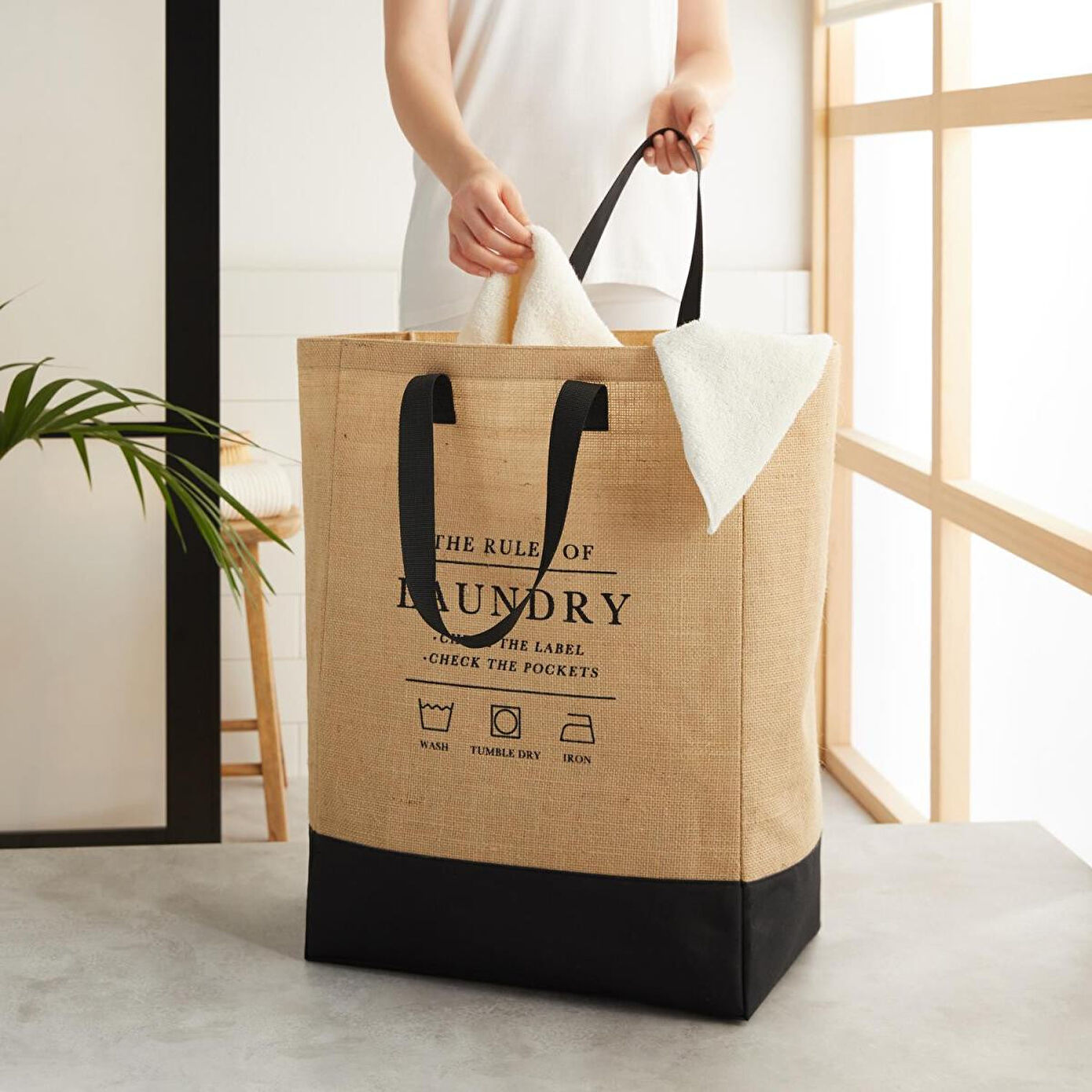Jüt kumaştan üretilmiş çamaşır çantası, banyoda, çamaşır odalarında ve tüm yaşam alanlarınızda farklı amaçlarla kullanabilirsiniz.