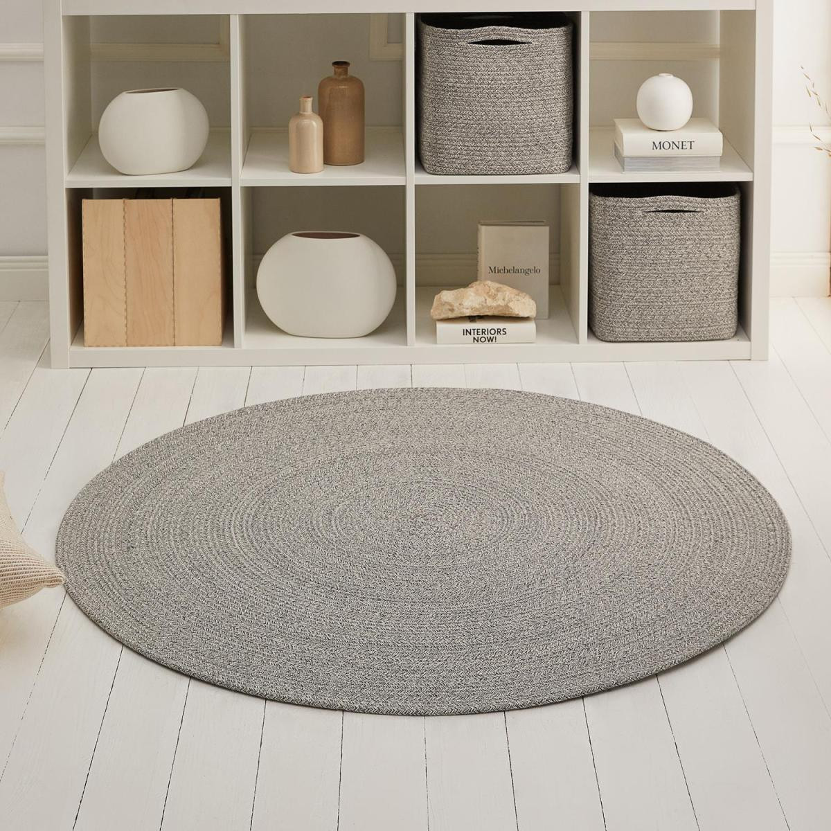 Ocean Home Textile Yıkanabilir Gri Kırçıllı Pamuklu Halı Kilim Ø 120 Cm