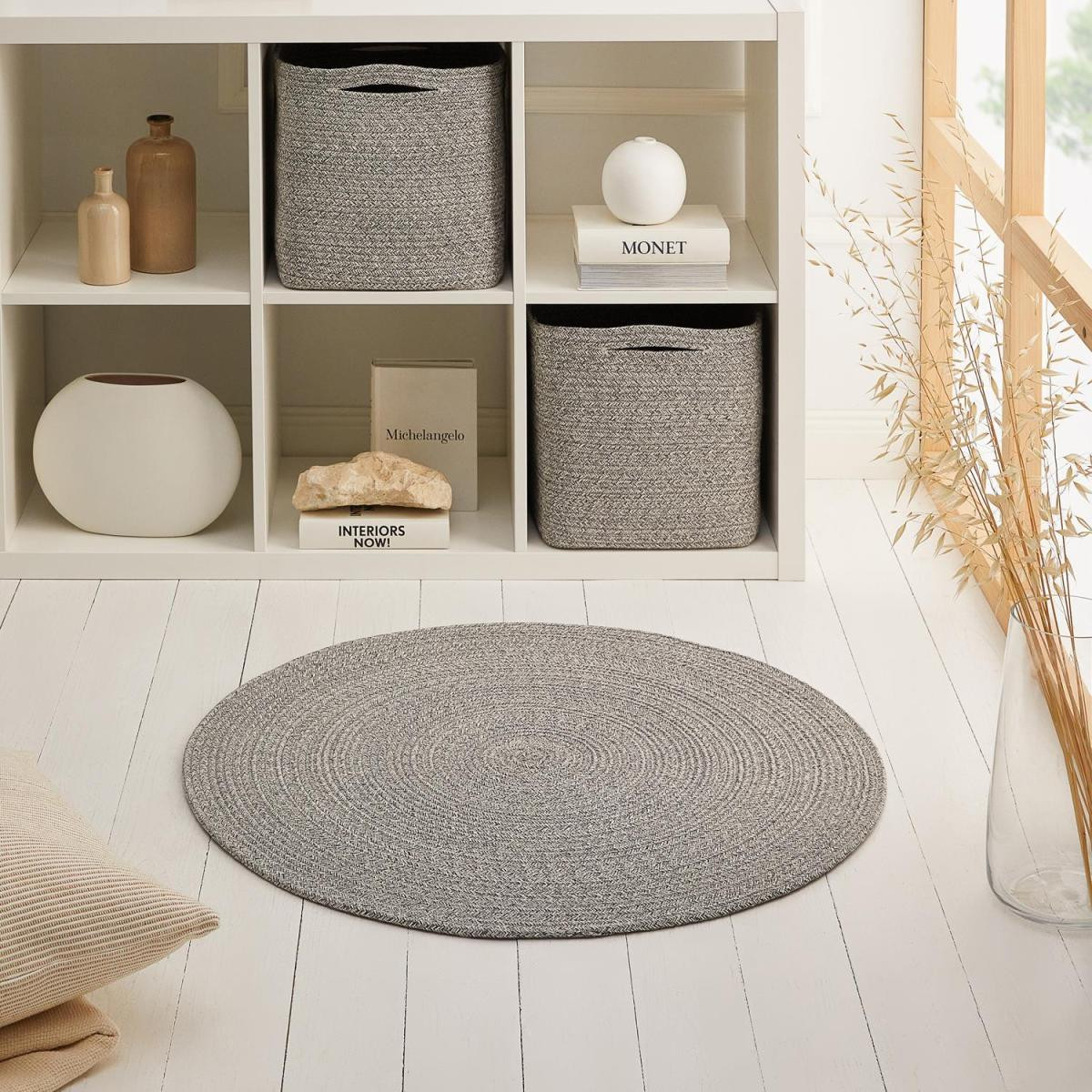 Ocean Home Textile Yıkanabilir Gri Kırçıllı Pamuklu Halı Kilim Ø 80 Cm