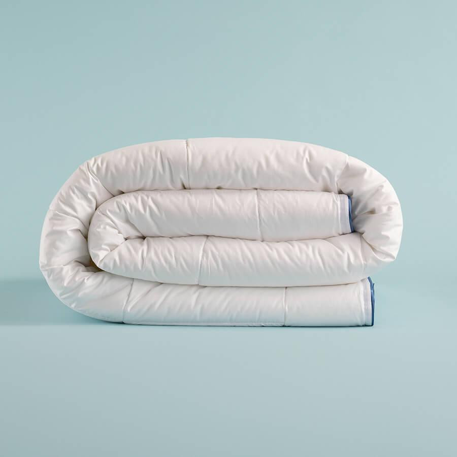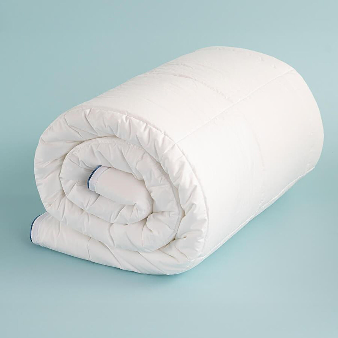 Mavi biyeli, şık tasarıma sahip Amelia Yorgan; 4 mevsim kullanıma uygundur.
