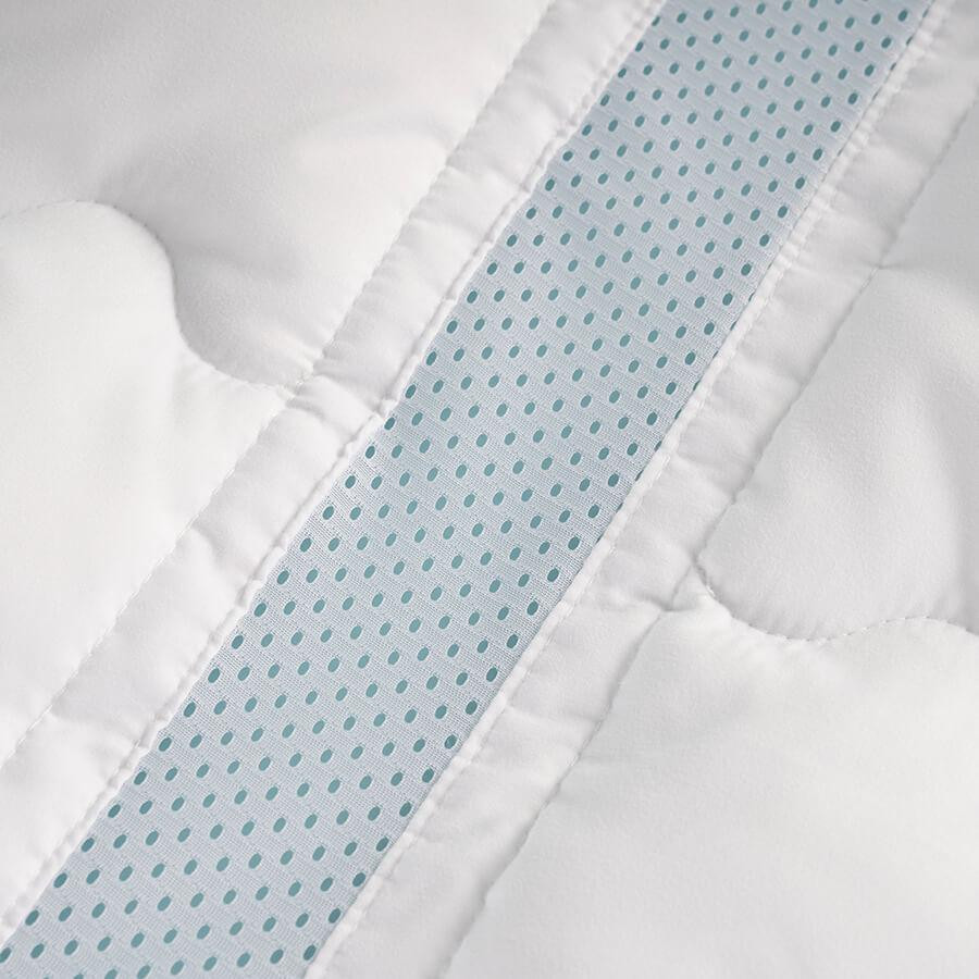 833 gr. HCS elyaf dolguya sahip Clima Sleep Aria hava kanallı yorgan, elyaf dolgulu kapitone şeritler ile hava geçirgenliği sağlayan file şeritlerin birleşiminden oluşmaktadır.