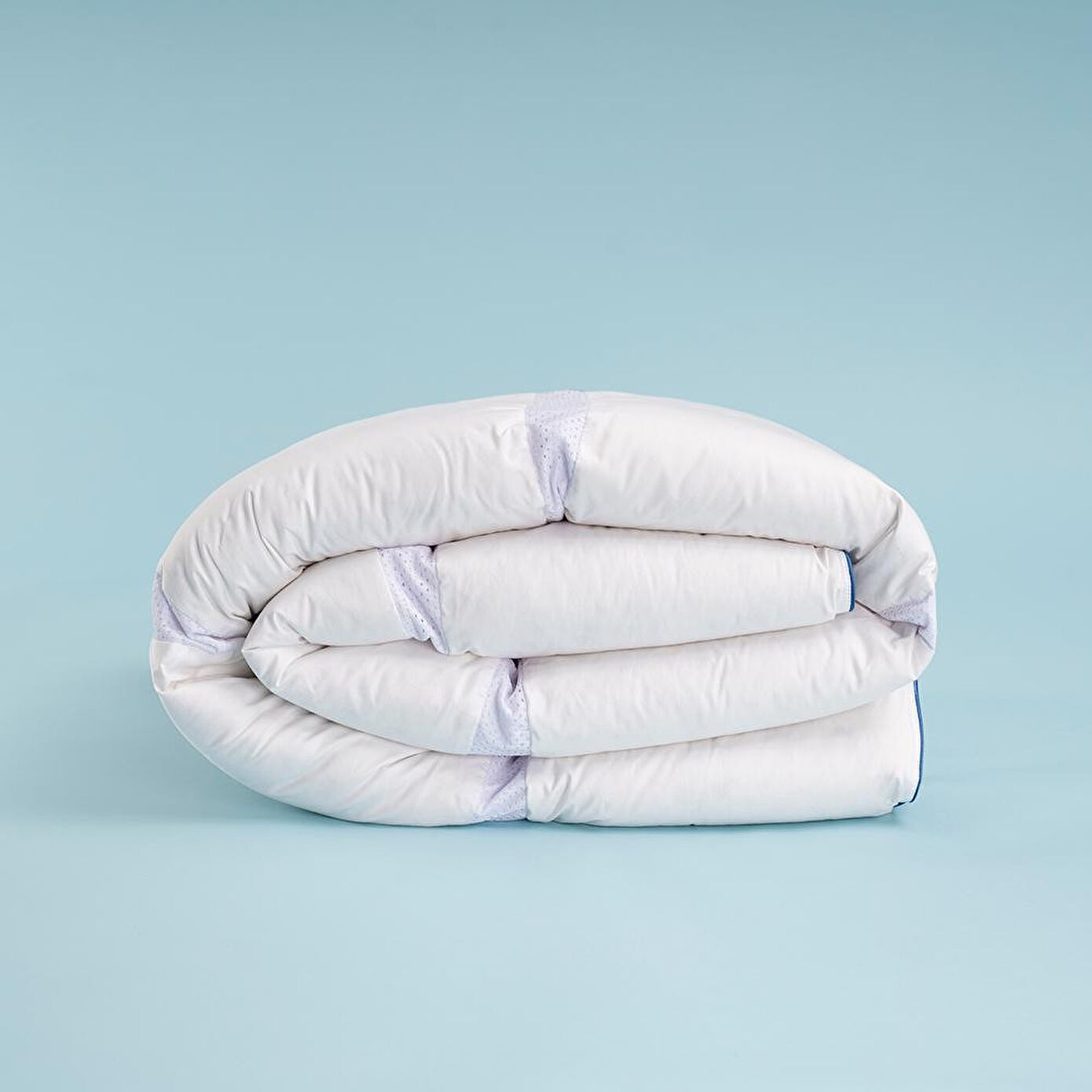 Climagel, dört mevsim kullanıma uygun ılık dereceli bir üründür. Hem kışın soğuk gecelerinde sizi sıcak tutar hem de yazın serinletici bir etki sağlar. Ayrıca, şık lacivert biyeli tasarımıyla da yatak odanıza zarif bir dokunuş katar.