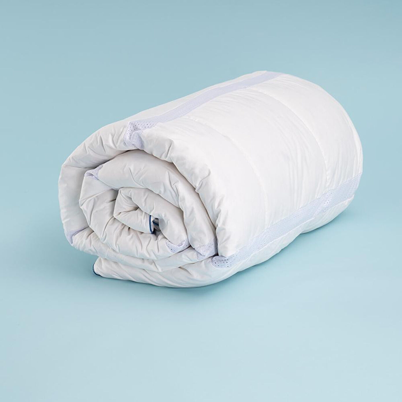 Climagel'in dolgusu, her bir dikişinde sıcaklığı hissettiren %90 gıdık kaz tüyü ile homojen birleşen mikrojel dolgudan oluşur. Bu özel dolgu, soğuk kış gecelerinde dahi sizi ılık ve sarmalanmış hissettirirken, yazın serin esintilerinde de hafifliğiyle sizi özgür bırakır. Yorganın ortasından geçen zarif file kumaş şeritler, uyurken vücudunuzun tazelenmesini ve nefes almasını sağlar, böylece rahat bir uyku garantilenir.