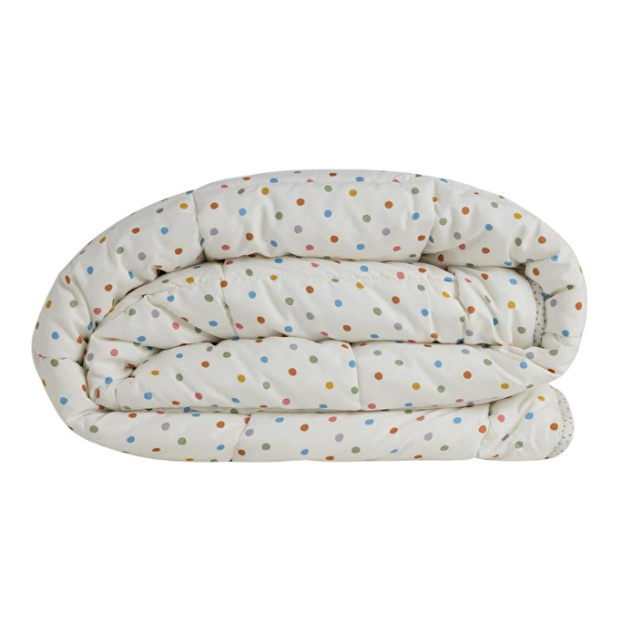 Kullanımı Kolay Çift Kişilik Yorgan 195x215 cm - Dormio Punto Serisi Dormio Koleksiyonu, pratik kullanımı ve estetik detaylarıyla nevresimsiz yorgan kategorisinde yeni bir soluk getiriyor. Modern yatak odalarına ilham veren bu özel koleksiyonda; mikrojel dolgulu, hafif ve hacimli yorganlar fonksiyonelliği şıklıkla buluşturuyor. 3 farklı renkte çiçek desenleri, iki ayrı geometrik yorum ve neşeli puantiye tasarımıyla 6 farklı model sunan koleksiyon, çift taraflı kullanılabilir yapısıyla dekoratif çeşitlilik de sağlıyor. Arka yüzlerinde kullanılan minimalist desenler sayesinde sade ve dengeli kombinler oluşturmak mümkün. Dormio; çabuk yıkanabilen, hızlı kuruyan ve nevresime ihtiyaç duymadan kullanılabilen formu sayesinde hem zamandan tasarruf sağlıyor hem de yatak odalarına şıklık katıyor. Dolgu Malzemesi : Mikrojel dolgu: 300 gr/m² – hafif ve hacimli yapı Kumaş: Mikrofiber kumaş – yumuşak dokunuş, konforlu kullanım Çift taraflı desen: 1 yüzü baskılı, 1 yüzü minimalist desenli Nevresim gerektirmez Kolay yıkanır, hızlı kurur Ebatlar: 195x215 cm / 1258 gr Estetik ve pratik bir uyku çözümü!