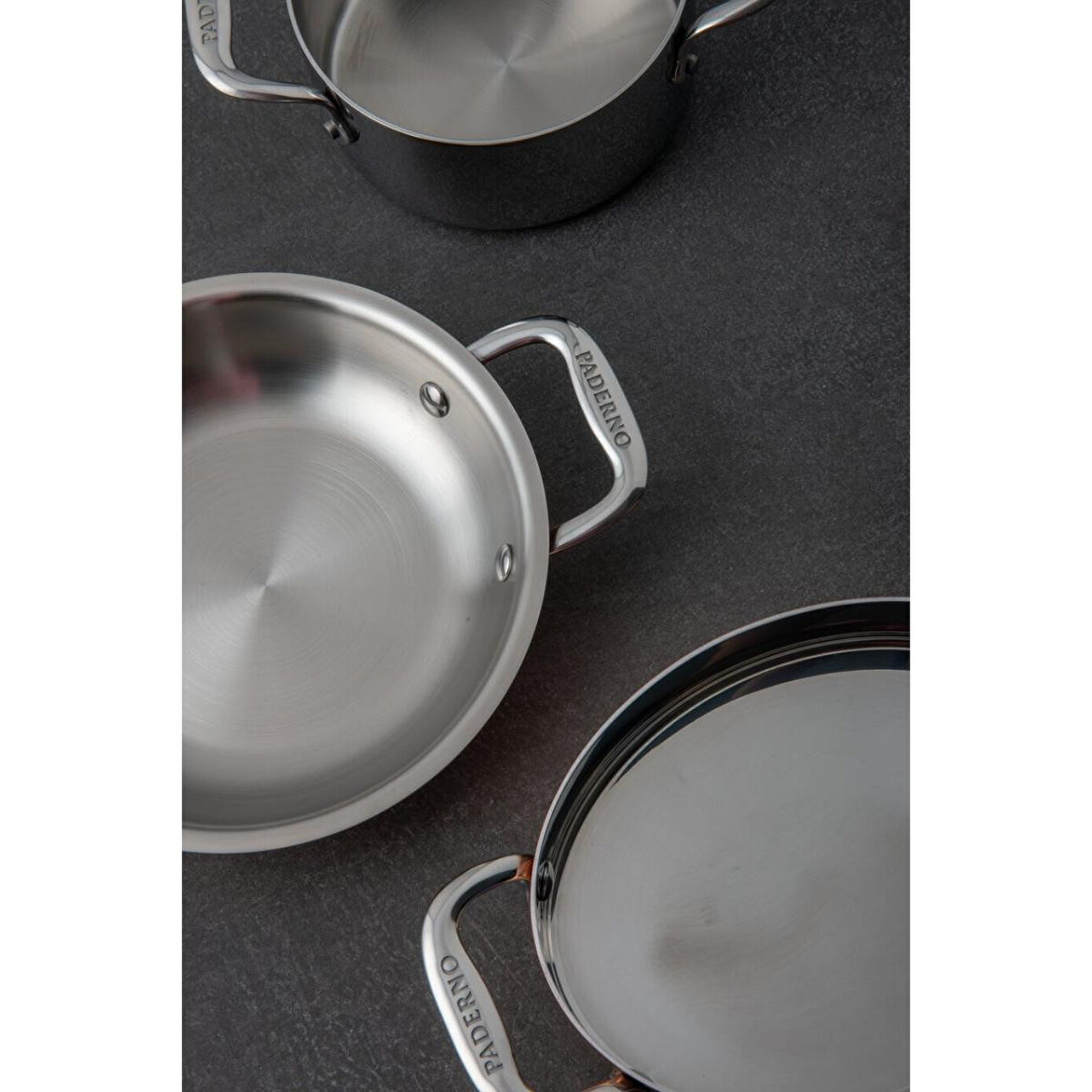 Mini sahan cm 16, yükseklik 3,5. 3 Katmanlı, içi paslanmaz çelik, alüminyum katmanlı, dışı çelik ayna kaplamalı, 2 mm kalınlığında ürünlerdir. Kulp ve perçinleri paslanmaz çelik dökümdür. Her türlü ocak için kullanıma uygundur. Makinede yıkanabilir.. Menşei: İtalya.