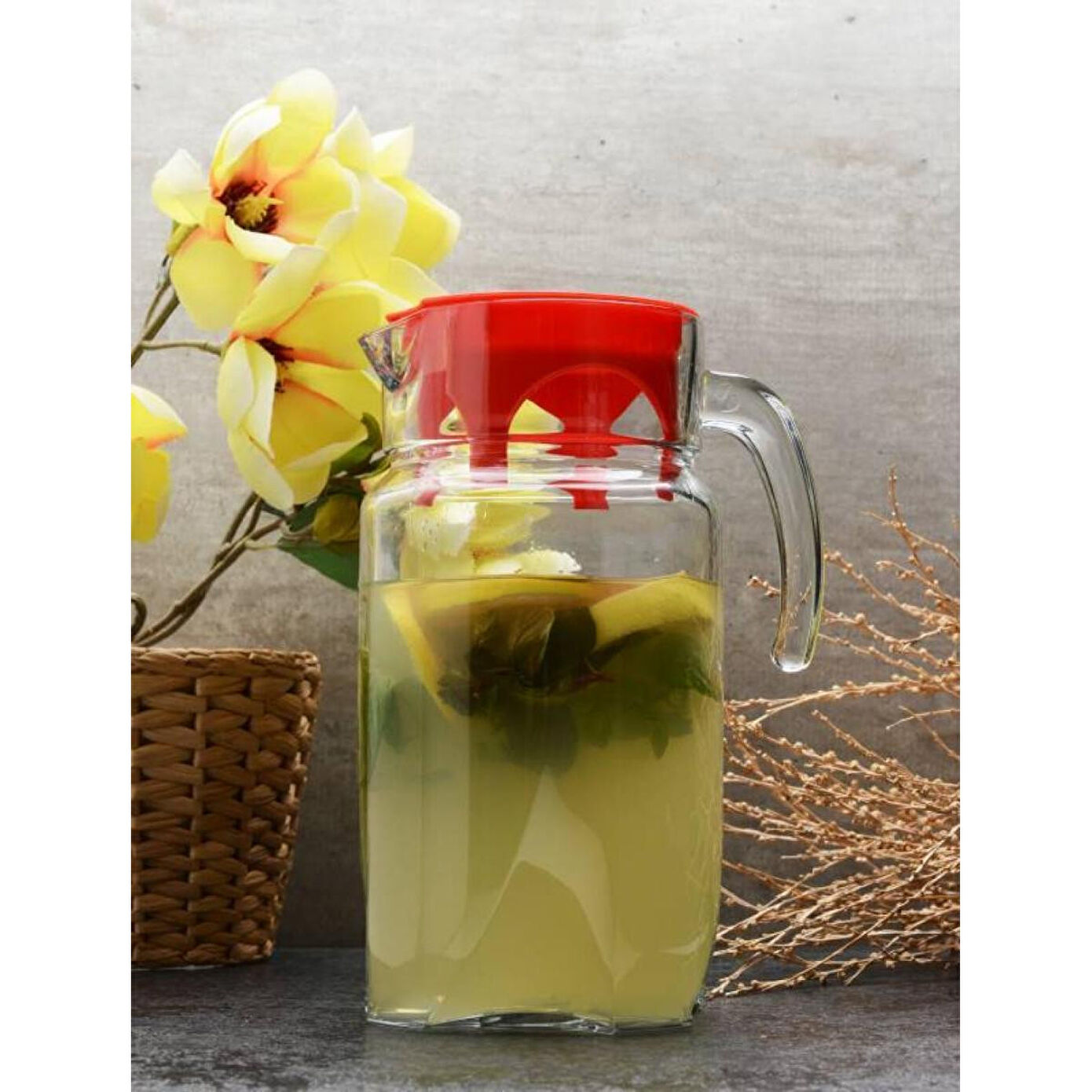 Paşabahçe Luna Kırmızı Kapaklı 1750 Cc Sürahi 43544