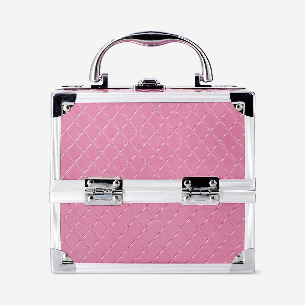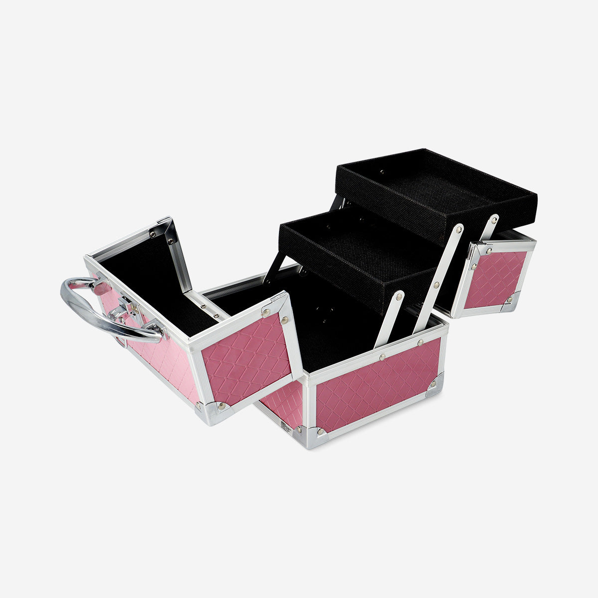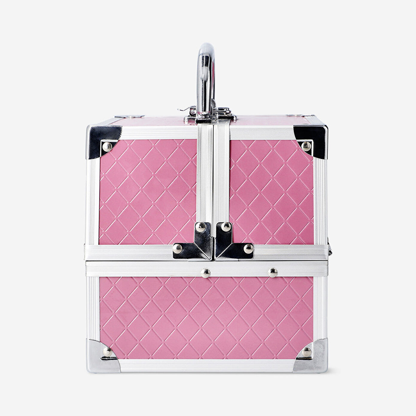 Pembe Makyaj Malzemesi Çantası, güzellik ürünlerinizi düzenli ve şık bir şekilde saklamak için tasarlanmış çok yönlü bir çözümdür. Kapitone pembe dış yüzeyi ve gümüş rengi kenar detaylarıyla zarif bir görünüm sunarken, dayanıklı yapısı günlük kullanım ve seyahat için mükemmel bir denge sağlar. 15 x 15,5 x 17,4 cm boyutlarındaki bu kompakt çanta, fırçalar, rujlar, takılar veya cilt bakım ürünleri gibi eşyalarınızı düzenlemenizi kolaylaştıran katmanlı tepsilere sahiptir. Güvenli toka kapaması ve rahat tutma sapı, eşyalarınızı güvenle taşımanızı sağlar.