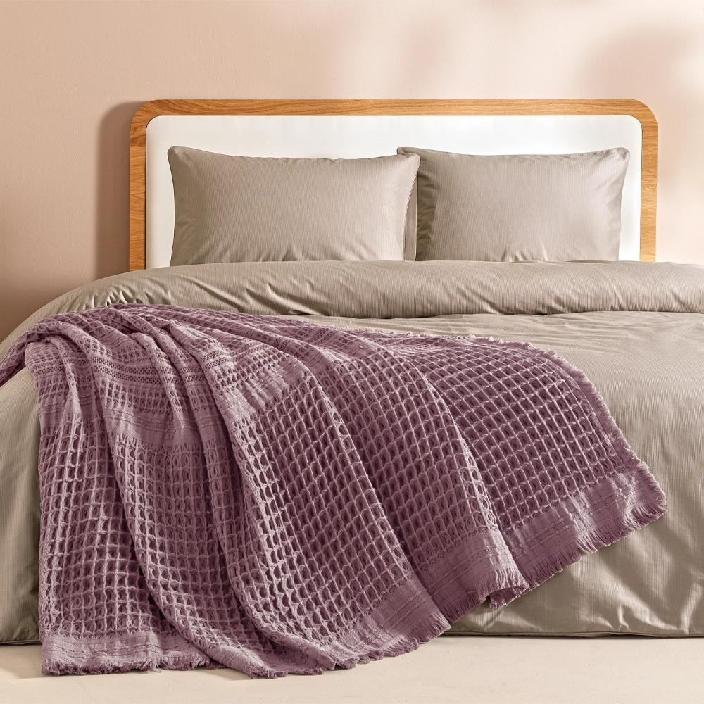 Penelope %100 Pamuk Dokuma Yatak Örtüsü 240x250 Cm Mürdüm - Belinda Serisi