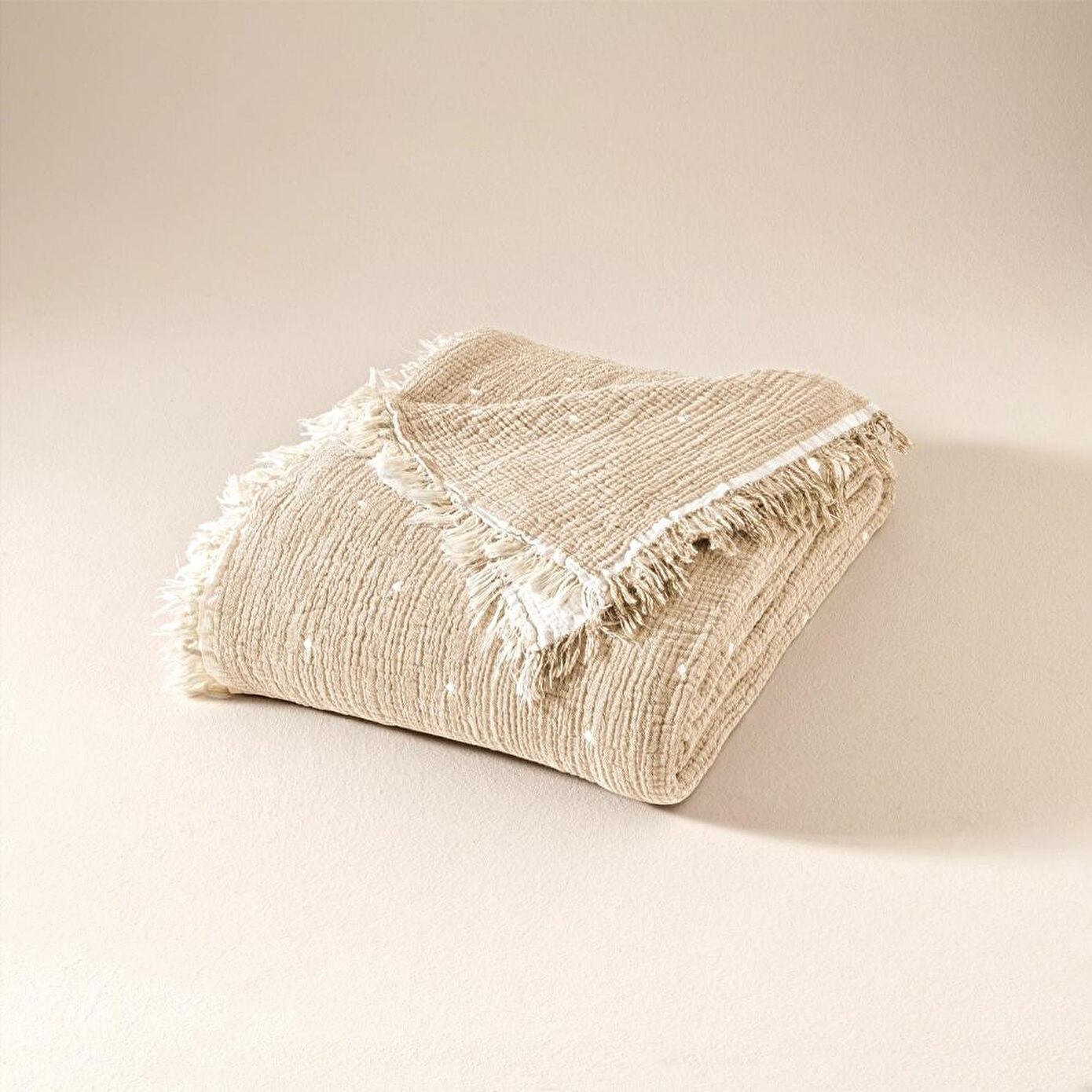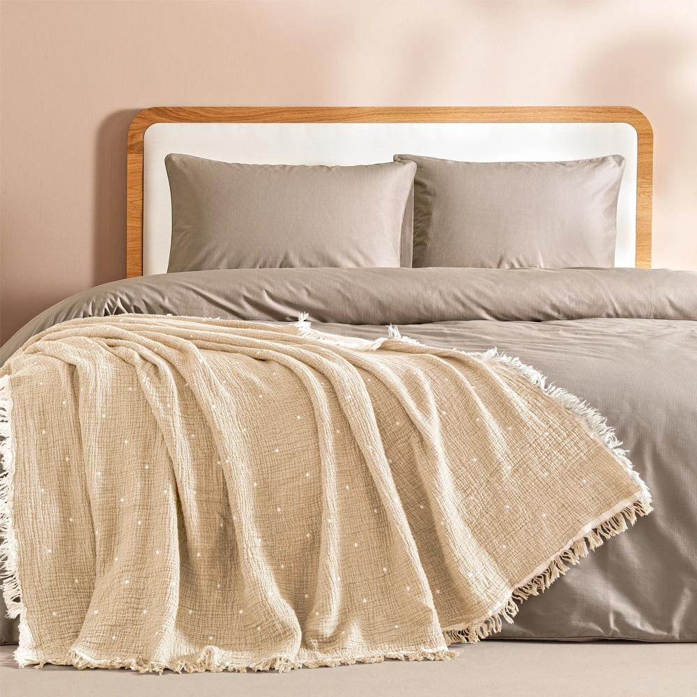 Penelope %100 Pamuk Müslin Yatak Örtüsü 160x240 Cm Bej - Glen Serisi