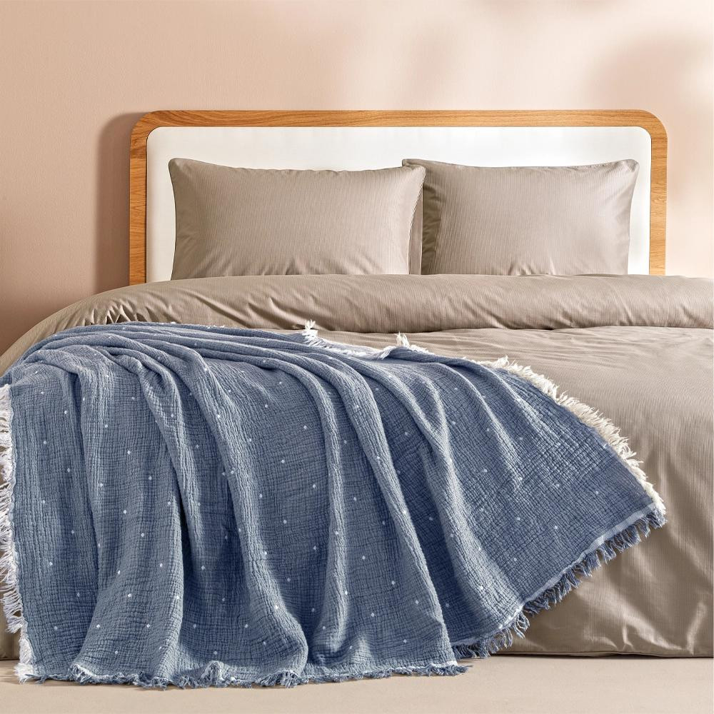 Penelope %100 Pamuk Müslin Yatak Örtüsü 160x240 Cm Mavi - Glen Serisi