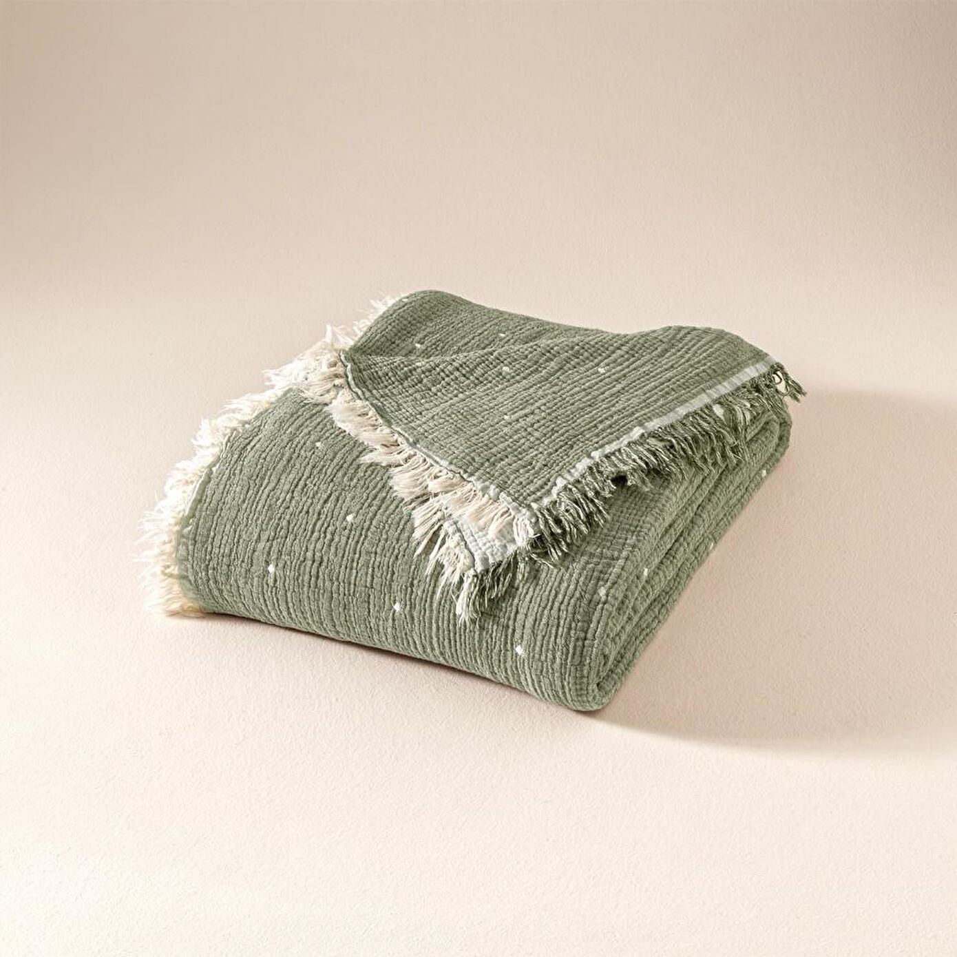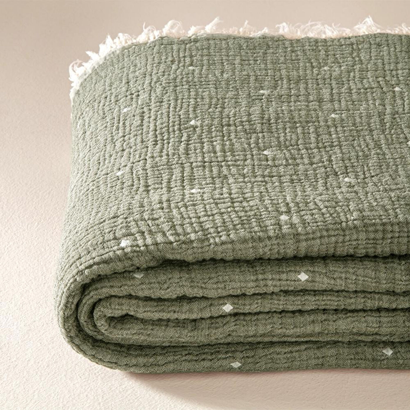 Penelope %100 Pamuk Müslin Yatak Örtüsü 220x240 Cm Yeşil - Glen Serisi