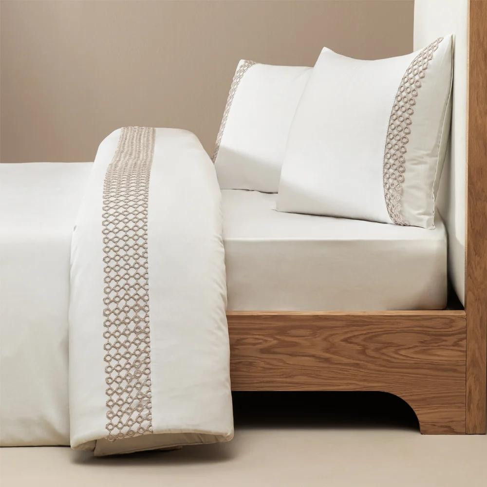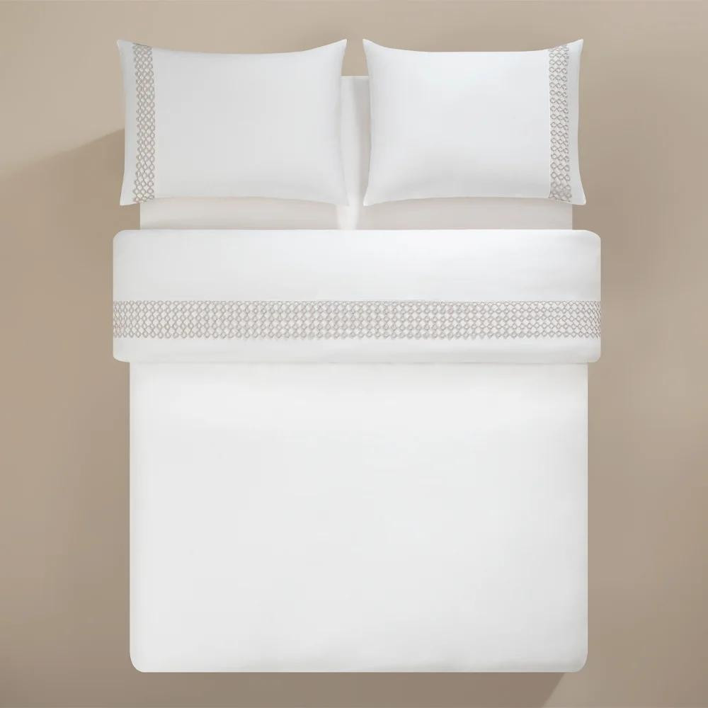 Penelope %100 Pamuk Saten Kumaş Nevresim Seti 200x220 Cm Beyaz Taş - Manuela Serisi