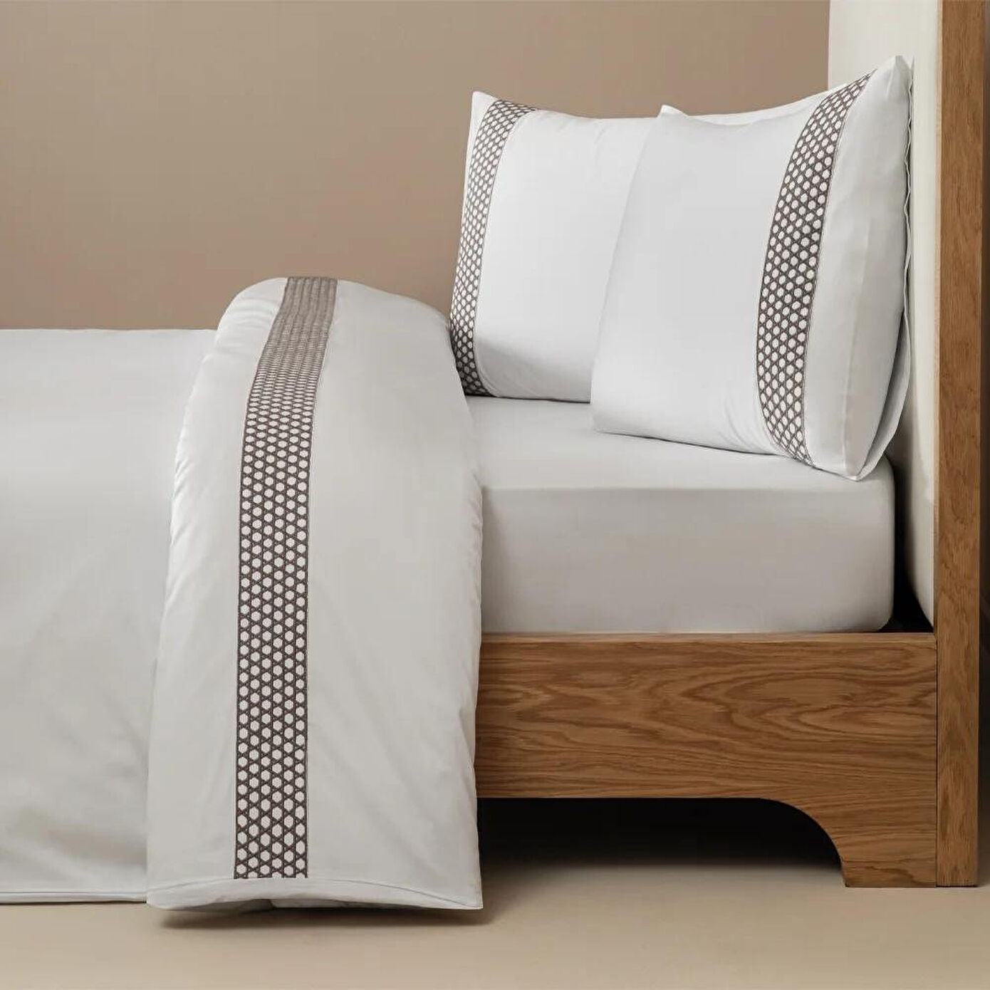 Penelope %100 Pamuk Saten Kumaş Nevresim Seti 240x220 Cm Beyaz Taş- Regina Serisi