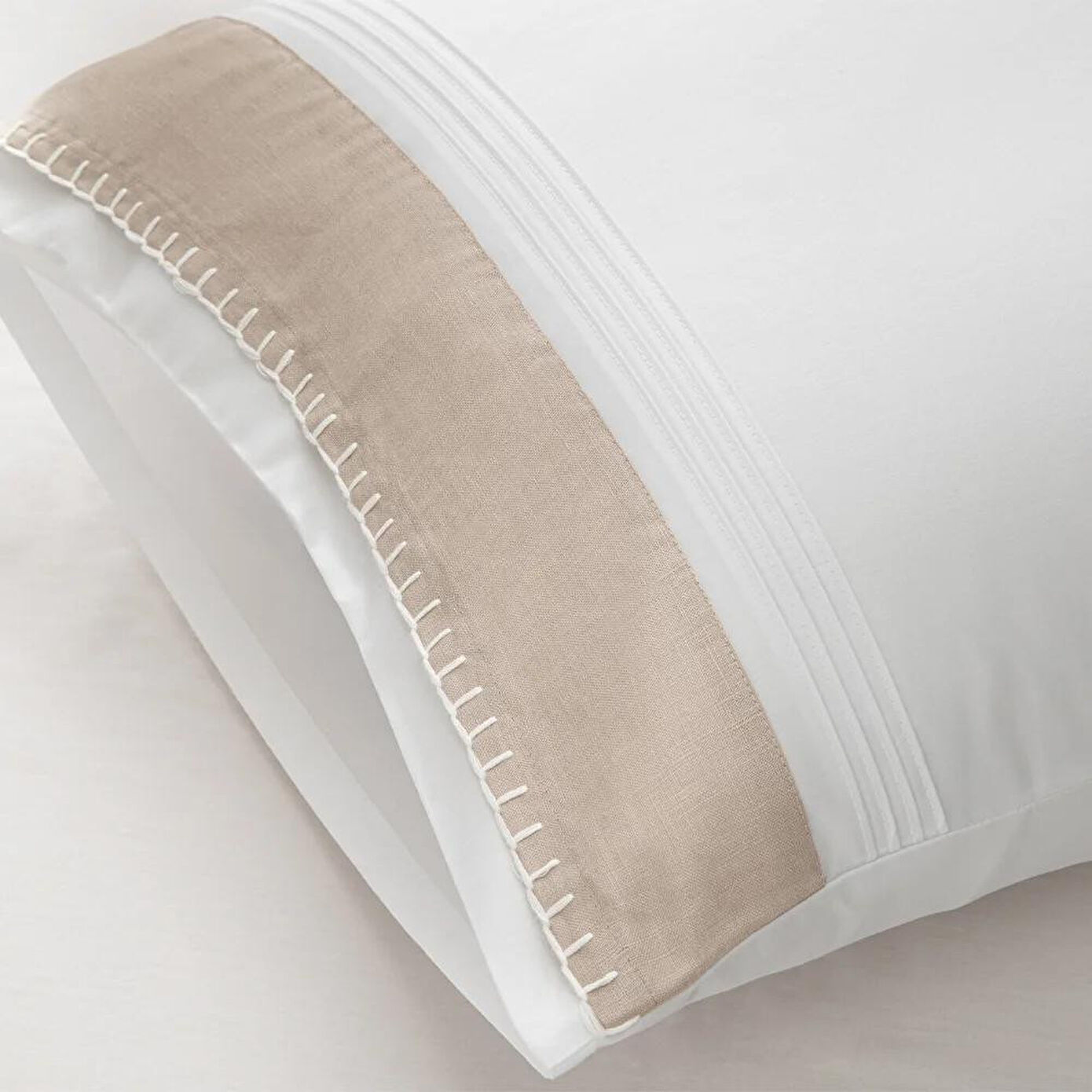 Setin içinde 50x70 cm ölçülerinde 2 adet yastık kılıfı bulunur. Yastık kılıfları, nevresimle uyumlu keten parça ve çoban dikişi detaylarıyla bütünsel bir estetik sunar.