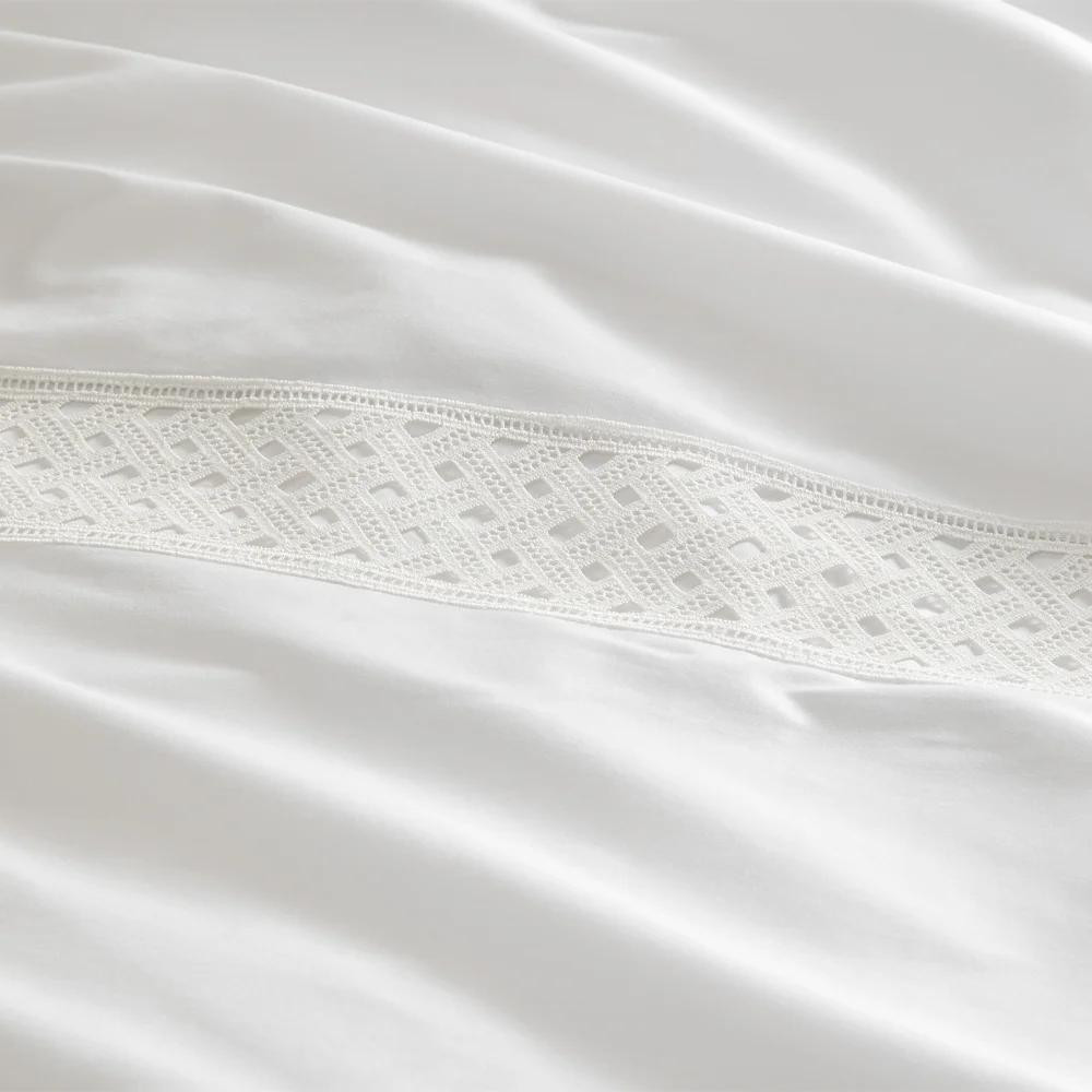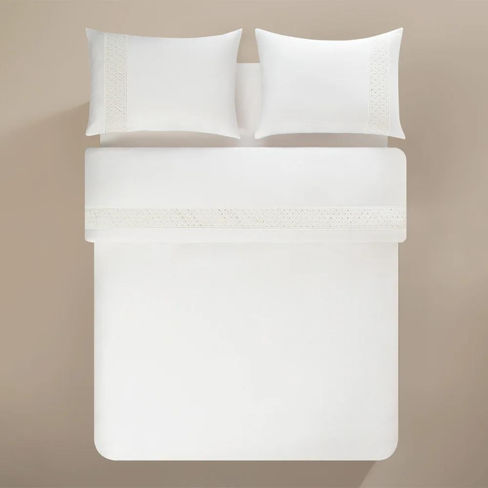 Yumuşacık temas hissi ve ipeksi parlaklığıyla yatak odanıza otel lüksü taşırken, delikli brode detayıyla dekoratif bir zarafet sunar.
