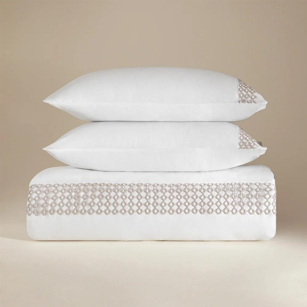 Penelope %100 Pamuk Saten Kumaş Nevresim Seti 260x240 Cm Beyaz Taş - Manuela Serisi