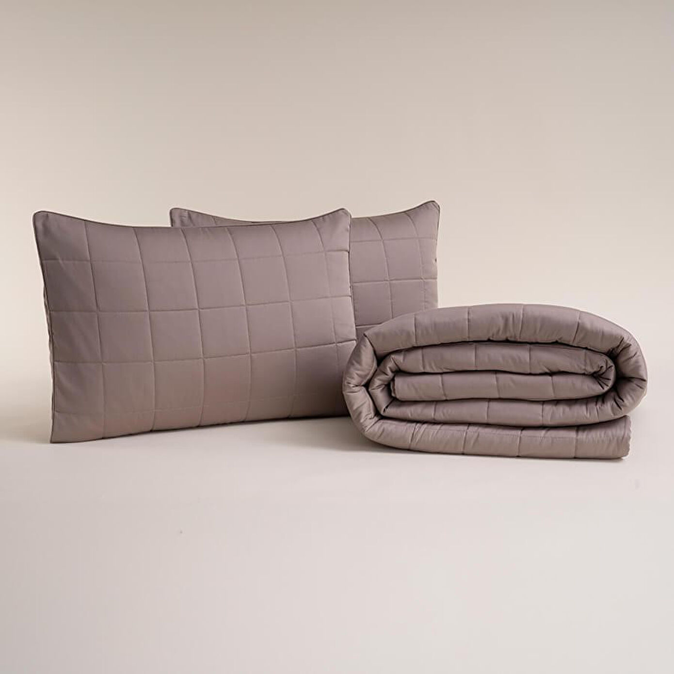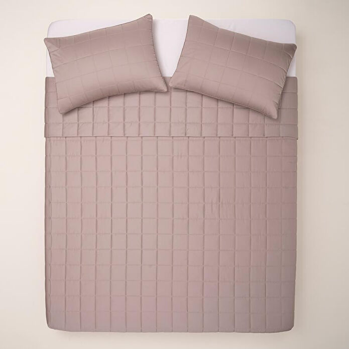 Lia Yatak Örtüsü Taş 300x280 ve 2 adet 50x70 kapitoneli yastık kılıfı