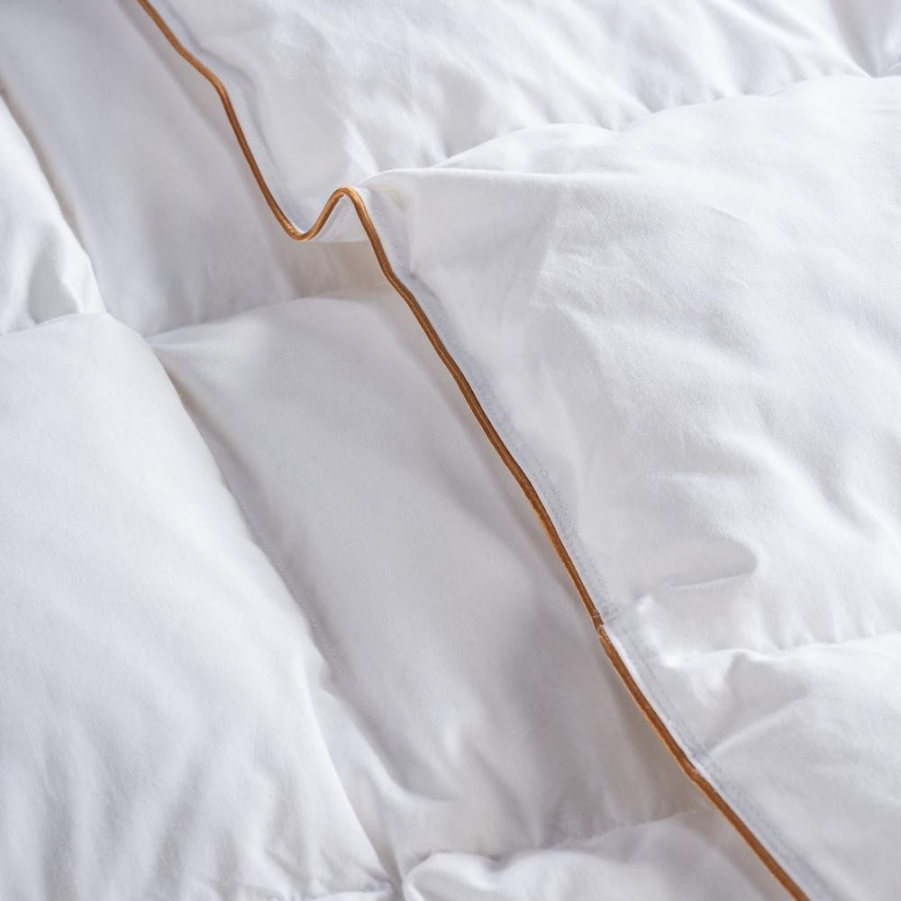 Penelope Bedroom olarak sunduğumuz uyku ürünleri arasında yer alan Bronze kaz tüyü yorgan, baharlık ürünlerimizden biridir. Bronze yorgan, %30 oranında birinci sınıf gıdık kaz tüyü dolgusu ile dikkat çeker. Dolgusu sayesinde de oldukça hafiftir.