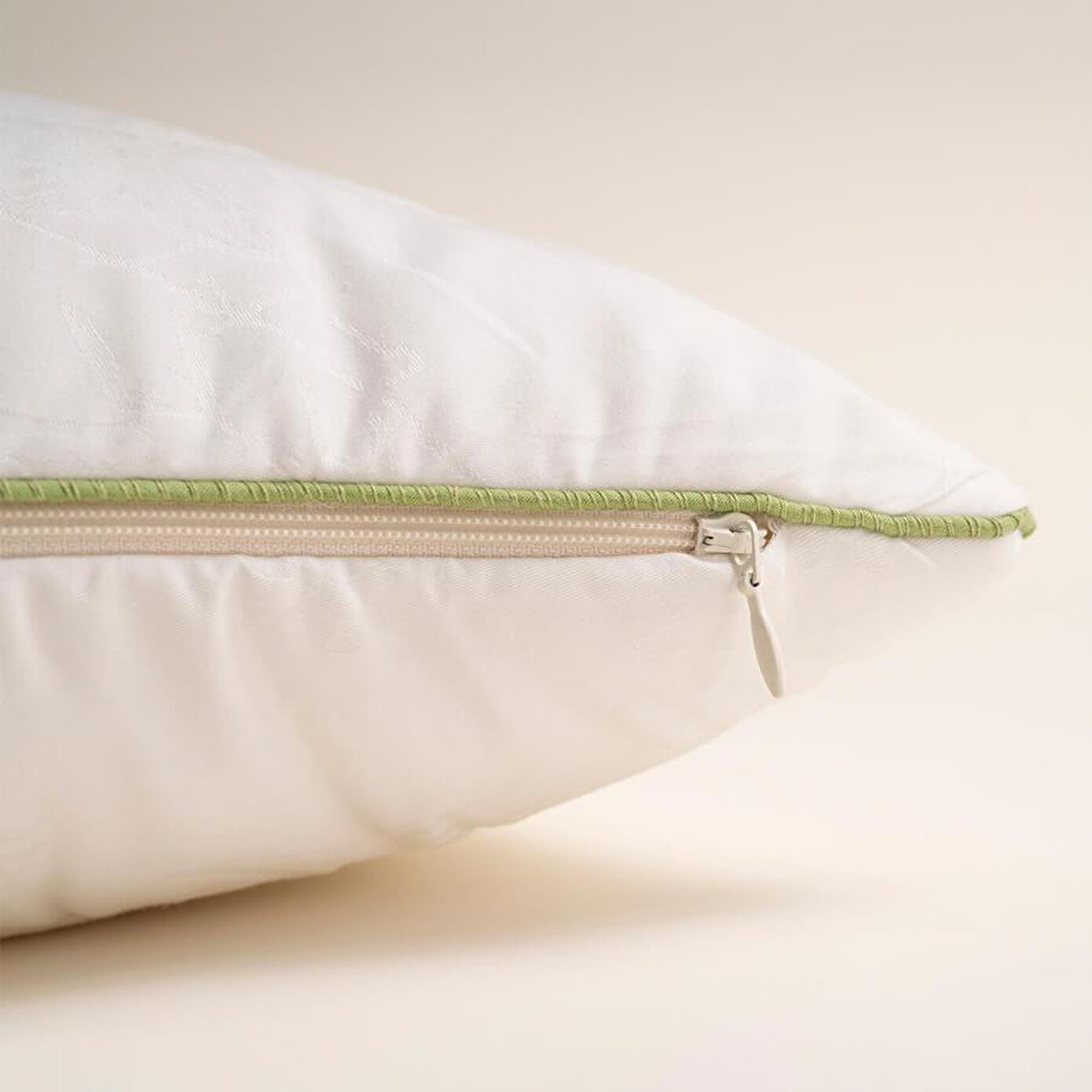 Bamboo yastık, iç yastık ve dış kapitoneli alezden oluşan bir settir. Alez, rahatlıkla yıkanarak yastığınızın daha hijyenik bir şekilde kullanmanızı sağlar. İç yastığın fermuarı sayesinde dolgu kalitesini görebilir ve yüksekliğini ayarlayabilirsiniz, böylece kişisel konforunuza tam anlamıyla karar verebilirsiniz.