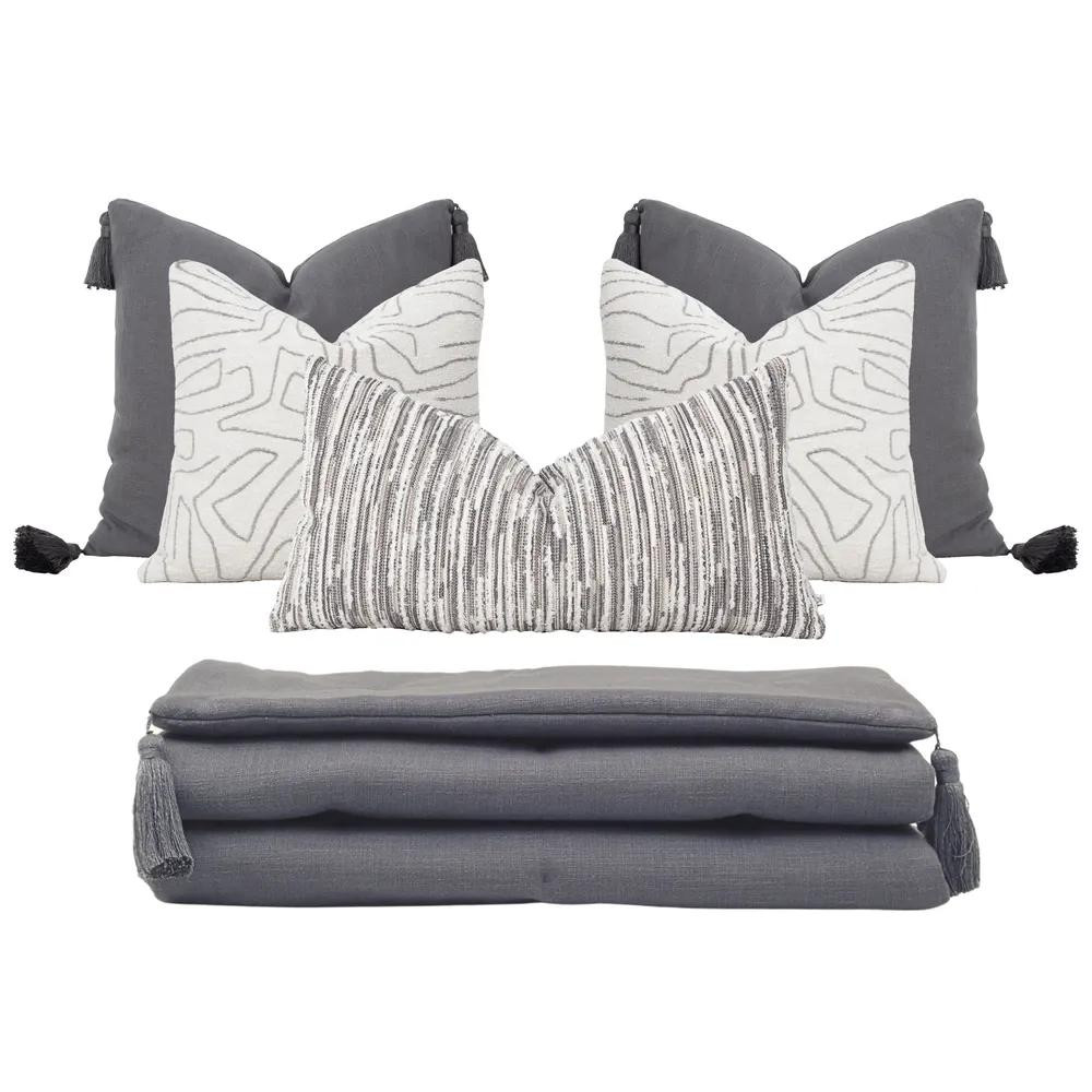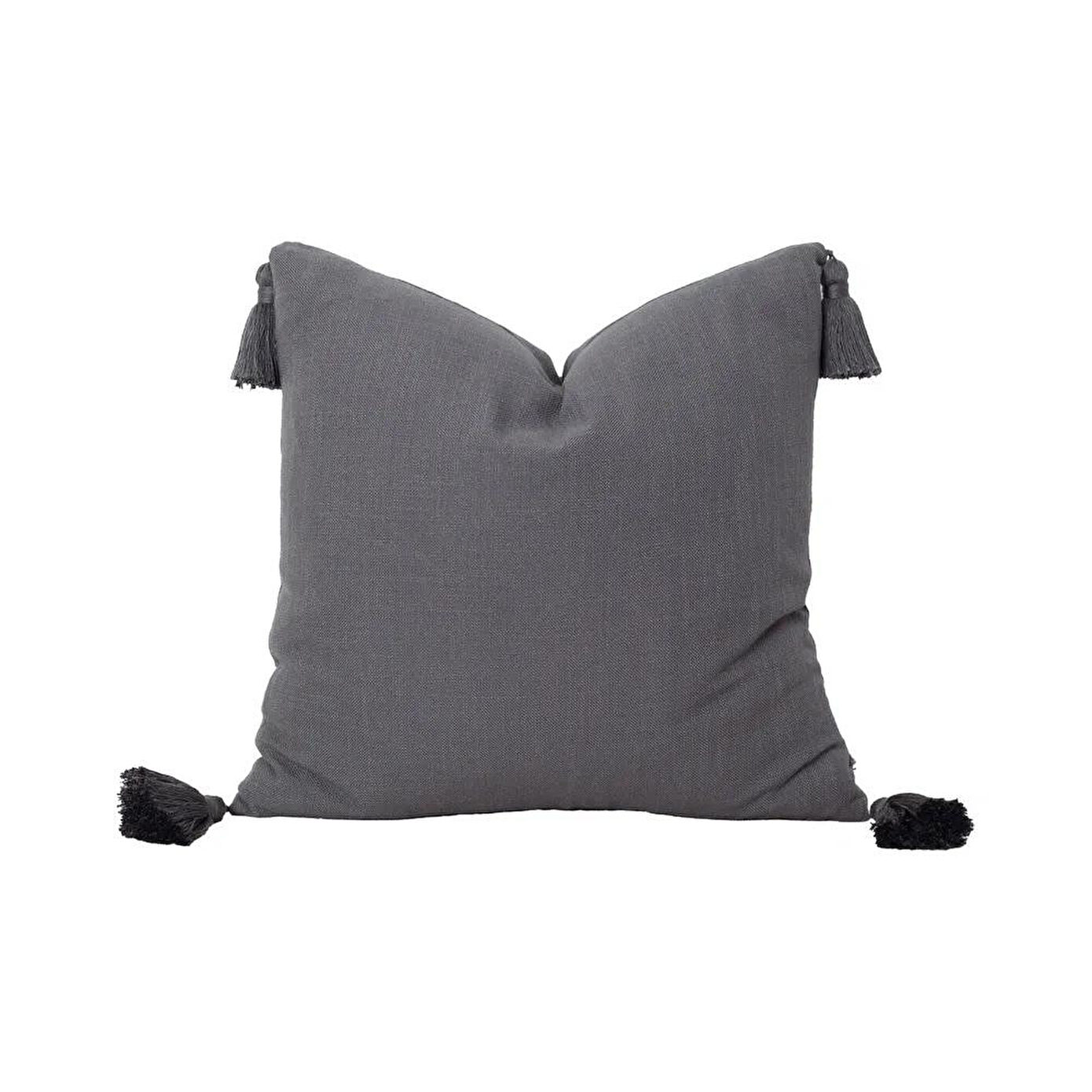Penelope Nora Püsküllü Kırlent Kılıfı 50x50 Cm Koyu Gri