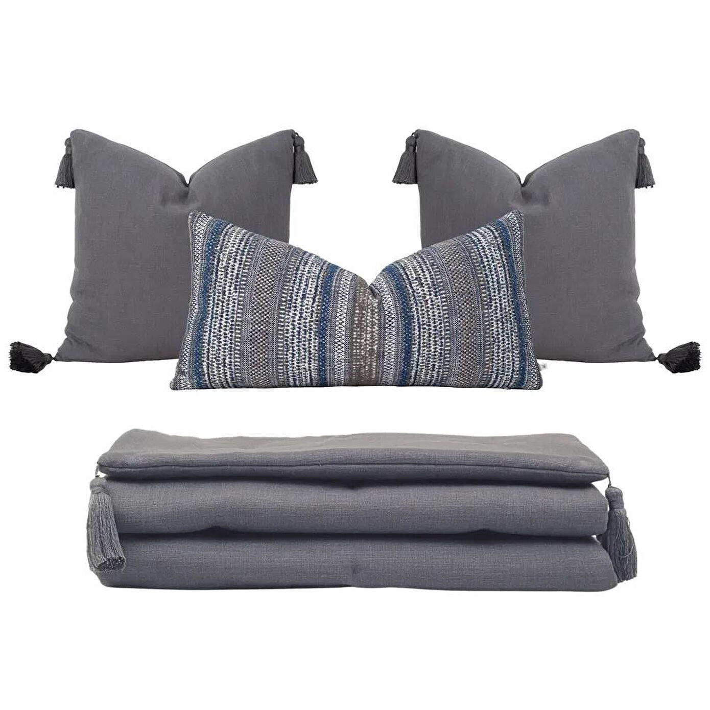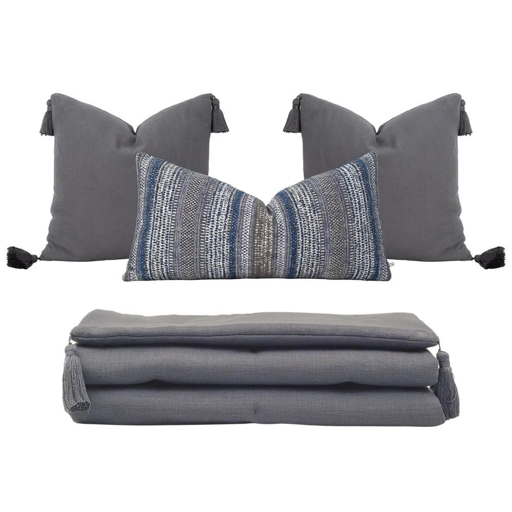Penelope Nora Püsküllü Yatak Üzeri Runner 70x220 Cm Koyu Gri