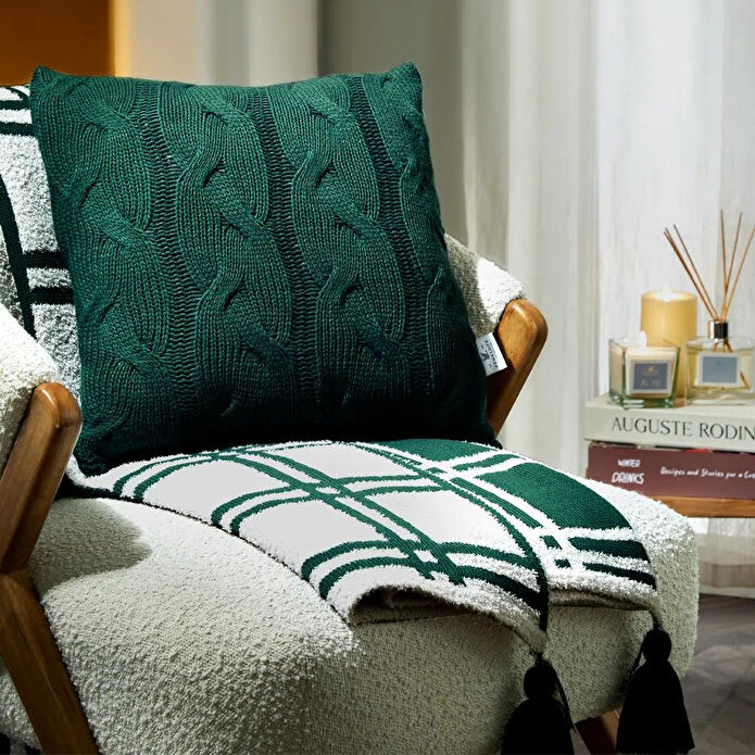 Penelope Triko Kırlent Kılıfı Yeşil 45x45 Cm - Cabella Serisi