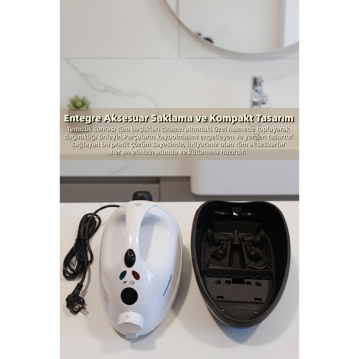 Güçlü ve Sürekli Buhar: 35g/dk buhar çıkışı ve 4 Bar’a ulaşan basıncı ile en zorlu lekeleri bile yumuşatarak temizler. Geniş Su Haznesi: 1200ML maksimum tank kapasitesi (tavsiye edilen 850ML) ile suyu sürekli doldurmanıza gerek kalmadan tek seferde yaklaşık 20 dakika kesintisiz temizlik yapmanızı sağlar. Zengin Aksesuar Seti (19 Parça): Farklı yüzeyler için tasarlanmış 19 adet aksesuarı ile zeminlerden fayans aralarına, ocak ızgaralarından pencere camlarına, koltuklardan perdelere kadar her yeri temizleyebilirsiniz. Kompakt ve Düzenli Tasarım: Cihaz üzerindeki aksesuar saklama alanı sayesinde başlıklarınız kaybolmaz. Az yer kaplayan toplanma modu ile temizlik bittiğinde dolabınızda minimum yer kaplar. Güvenli Kullanım: IPX4 suya dayanıklılık sertifikası ile güvenli bir kullanım sunar.Kullanım Alanları: