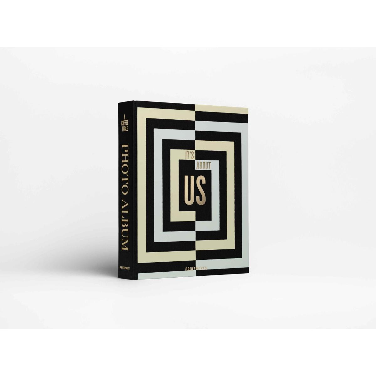 Klasik kutu içinde sunulan ve dekoratif obje olarak da kullanılabilen “It’s About Us” fotoğraf albümümüzü keşfedin. Zarif, siyah, altın ve beyaz renklerden oluşan kumaş kapak üzerinde altın varaklı yazılar yer alır. İçinde yüksek kaliteli siyah fotoğraf kağıdından oluşan 30 sayfa bulunur. Her sayfaya iki adet 10x15 cm boyutunda fotoğraf sığar, alt kısımda kişisel notlarınız için boşluk bırakılır. Fotoğraf kağıdı boyutu 28x21 cm’dir. Ürün Bilgileri: Malzeme: Kumaş kapak Sayfa Sayısı: 30 sayfa yüksek kaliteli siyah fotoğraf kağıdı, boyut 28x21 cm Renk: Siyah / Çok renkli Boyutlar: 33 x 27 x 5 cm Ağırlık: 1 kg