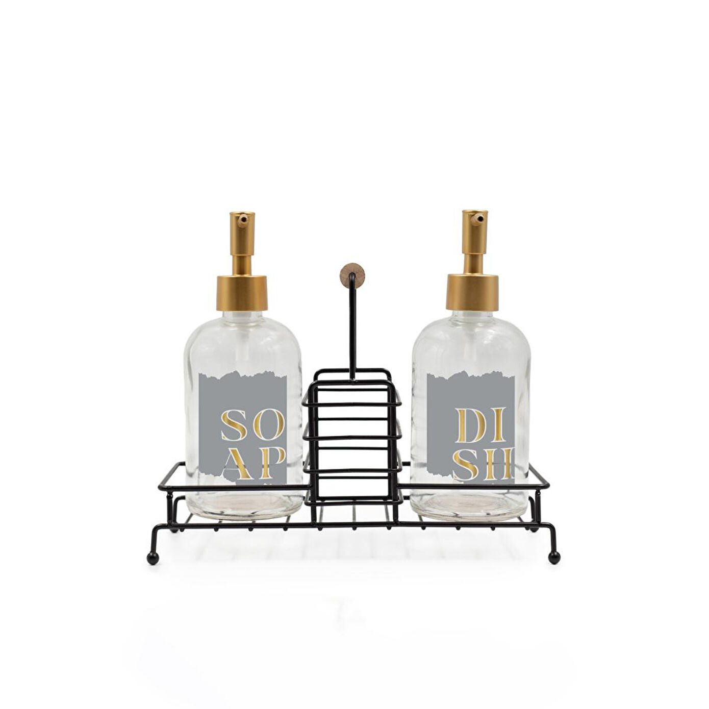 Rakle Alaska Siyah Metal Ahşap Kulplu Stand 2'li Sıvı Sabunluk Seti 420 Cc