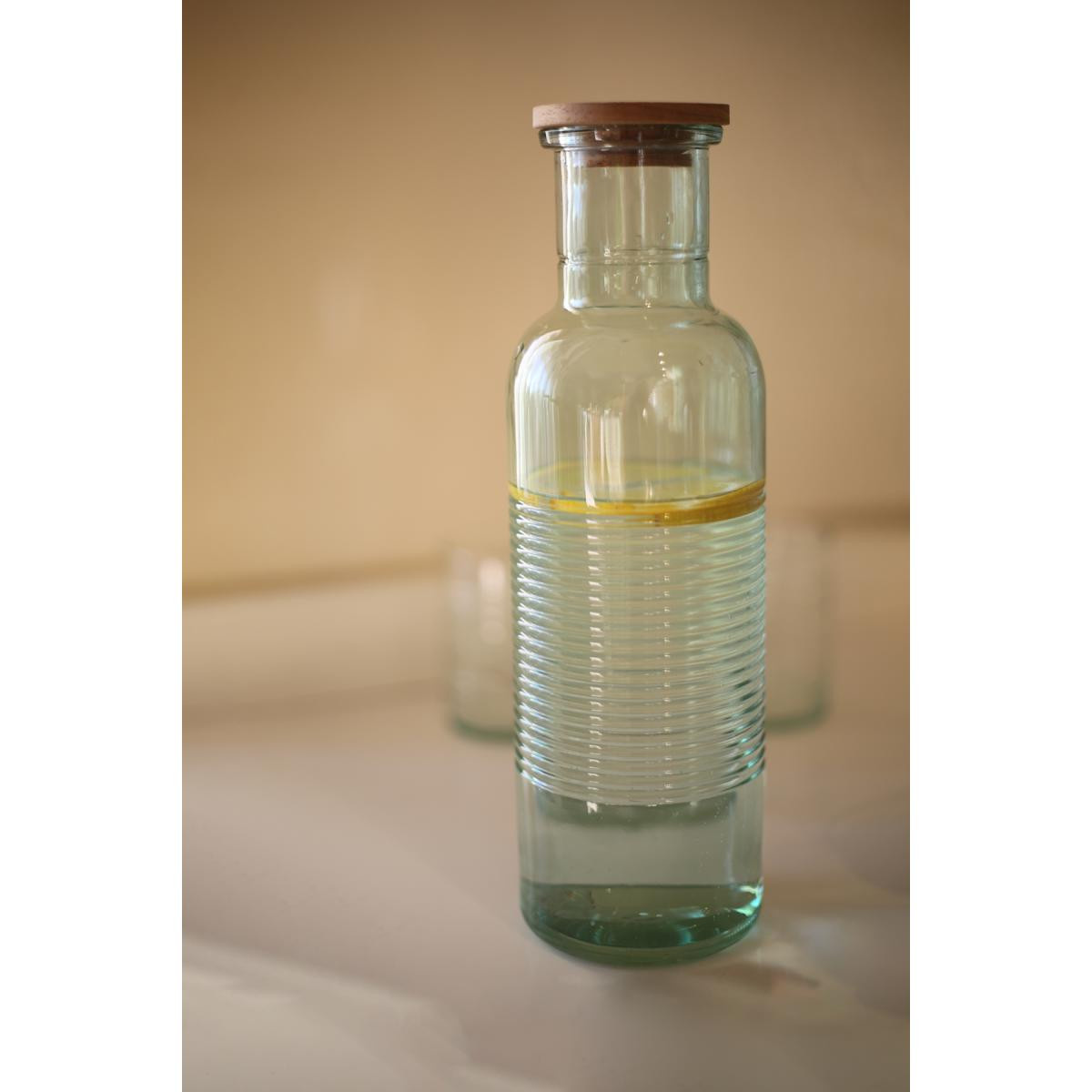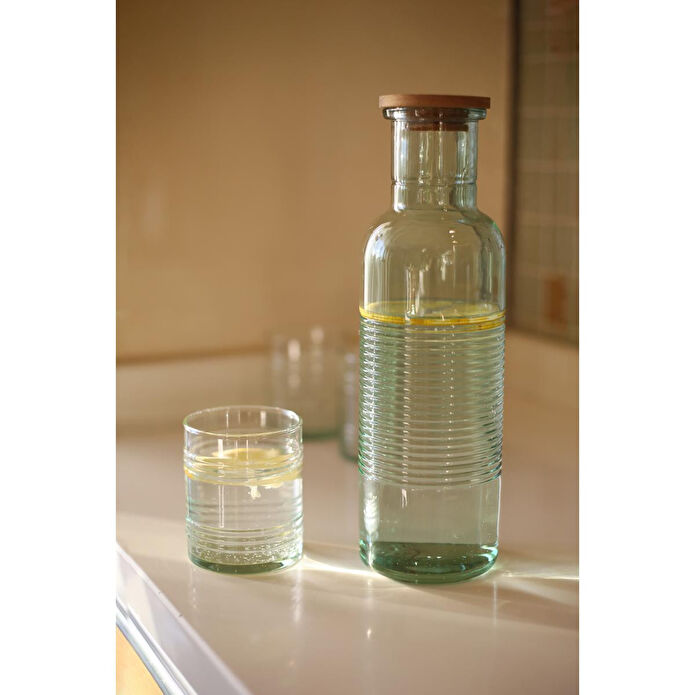Uzun süreli kullanım için elde yıkanması tavsiye edilir. Hacim: 280 cc / 1070 cc Renk: Yeşil Malzeme: %100 Cam Paket içeriği: 4 adet su bardağı, 1 adet karaf ve 1 adet bambu karaf kapağı Cam Ölçüsü Karaf: Yükseklik: 27,5 cm Ağız: 6 cm Bardak: Yükseklik: 8,8 cm Ağız: 7,3 cm