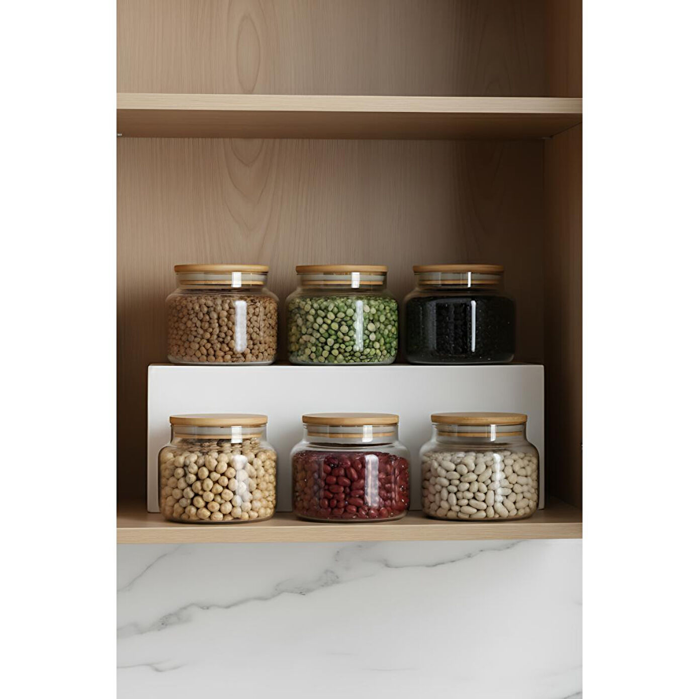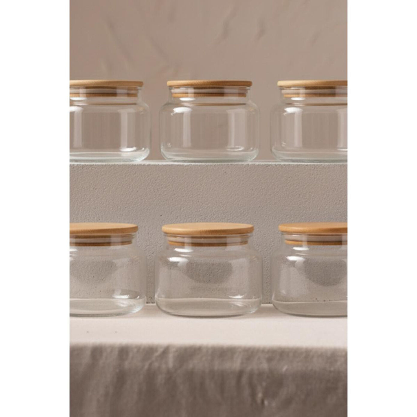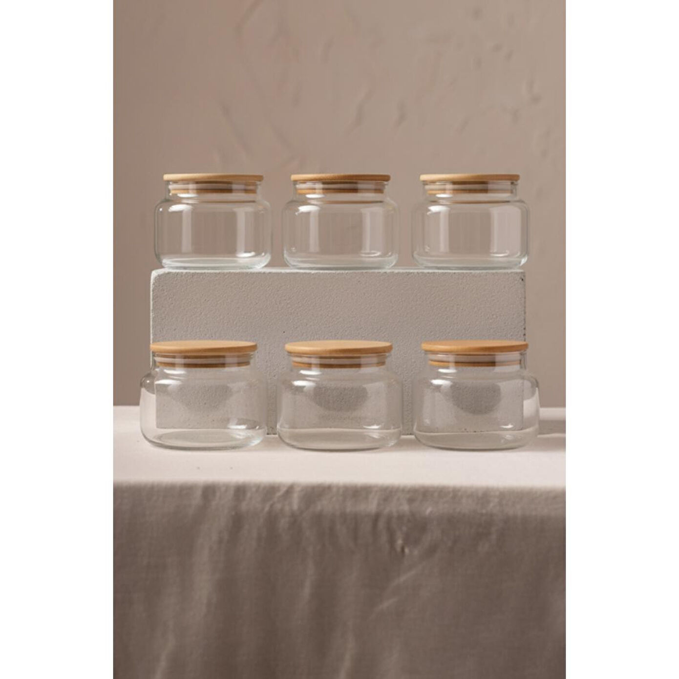 Rakle Basic Bambu Kapaklı 6'lı Cam Kavanoz Seti 350 Cc