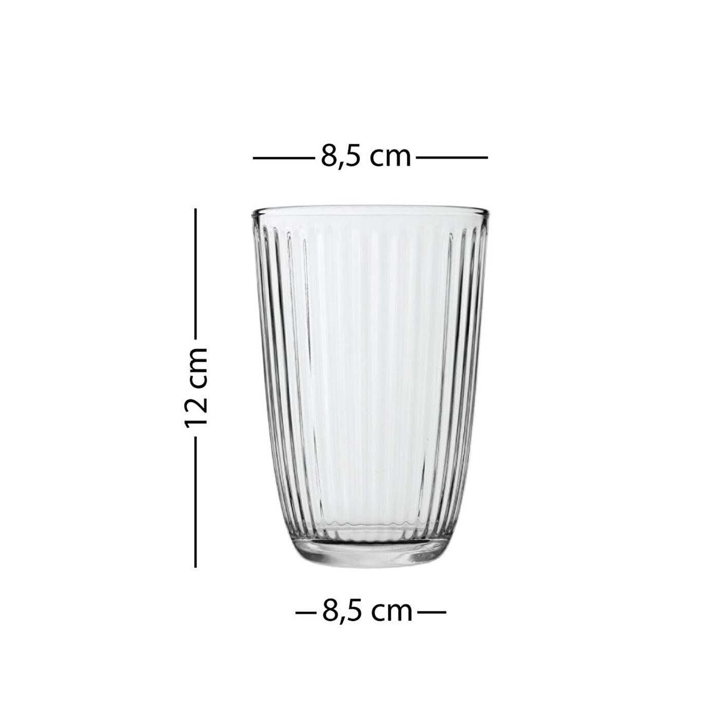 Uzun süreli kullanım için elde yıkanması tavsiye edilir. Hacim: 395 cc Renk: Şeffaf Malzeme: %100 Cam Paket içeriği: 4 adet meşrubat bardağı Cam Ölçüsü Yükseklik: 12 cm Ağız: 8,5 cm