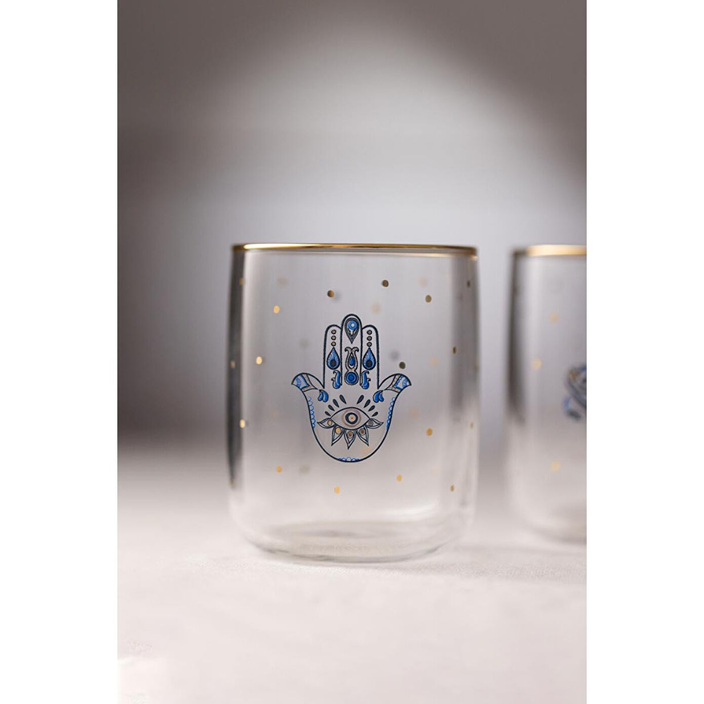 Uzun süreli kullanım için elde yıkanması tavsiye edilir. Hacim: 280 cc Renk: Altın Yaldız Malzeme: %100 Cam Paket içeriği: 4 adet kahve yanı Cam Ölçüsü Yükseklik: 8,9 cm Ağız: 7 cm Dip: 7 cm Genişlik: 7,2 cm