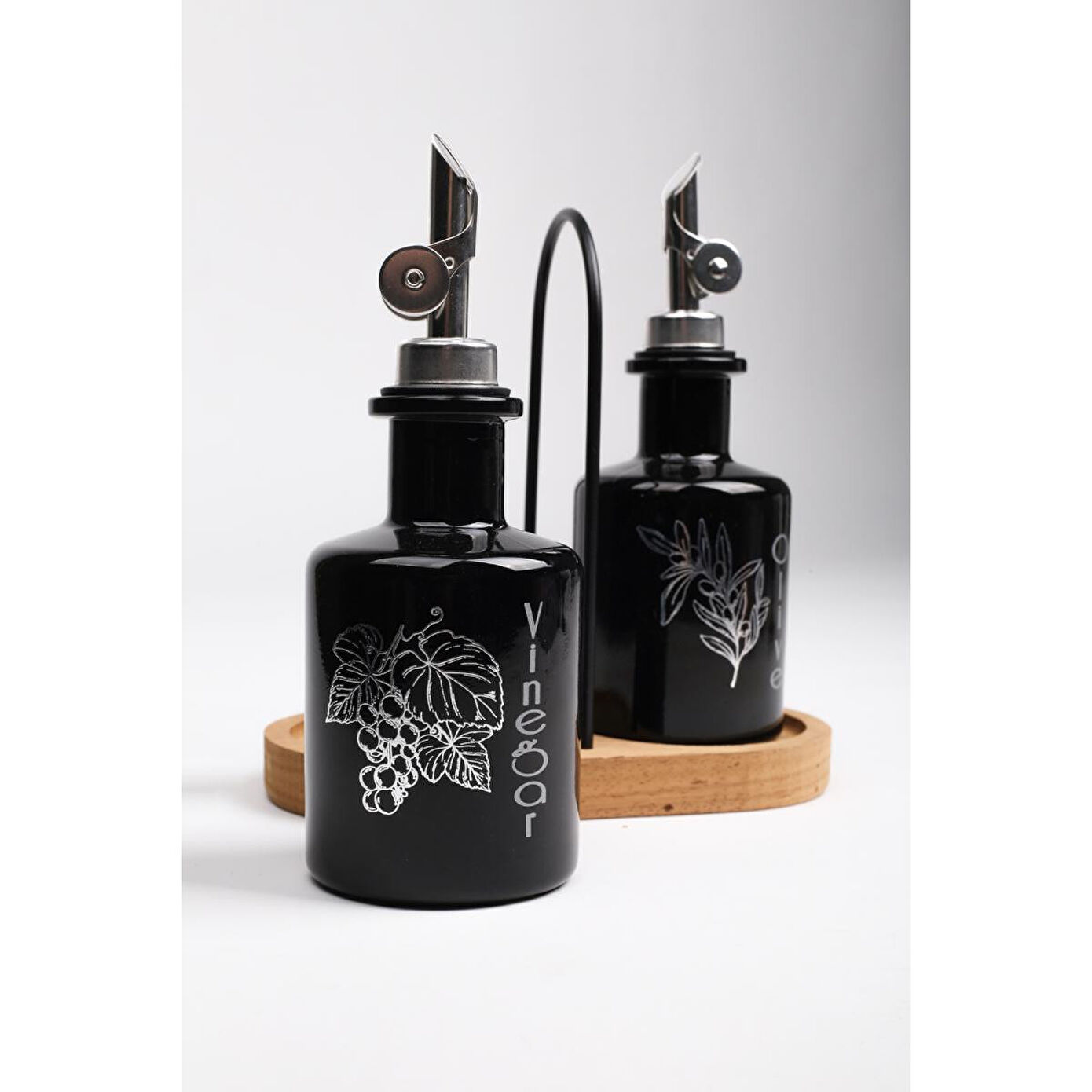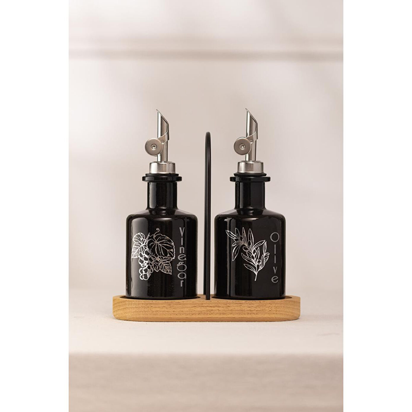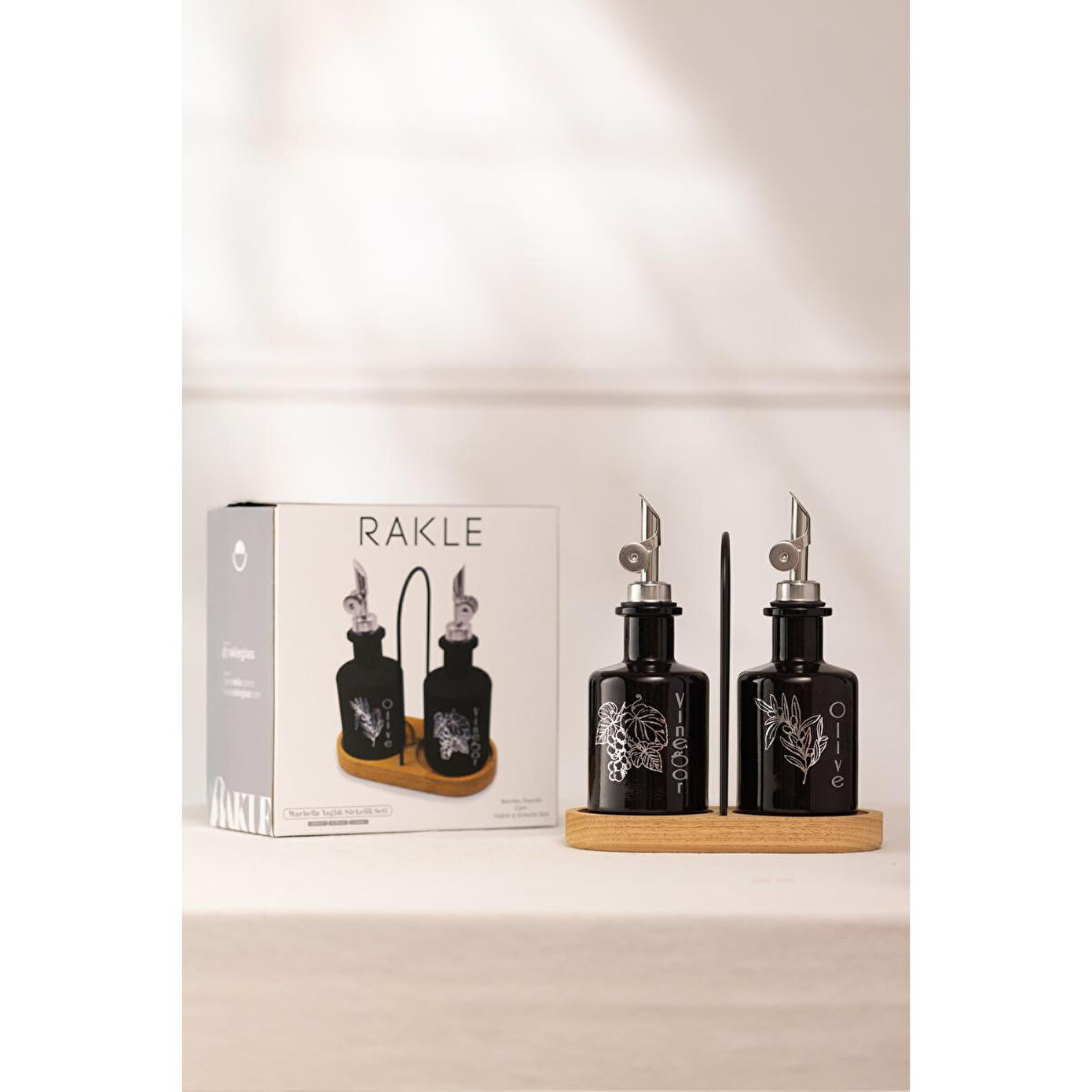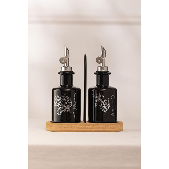 Rakle Marbella Bambu Stantlı 2'li Yağlık-sirkelik Seti Siyah 200 Cc
