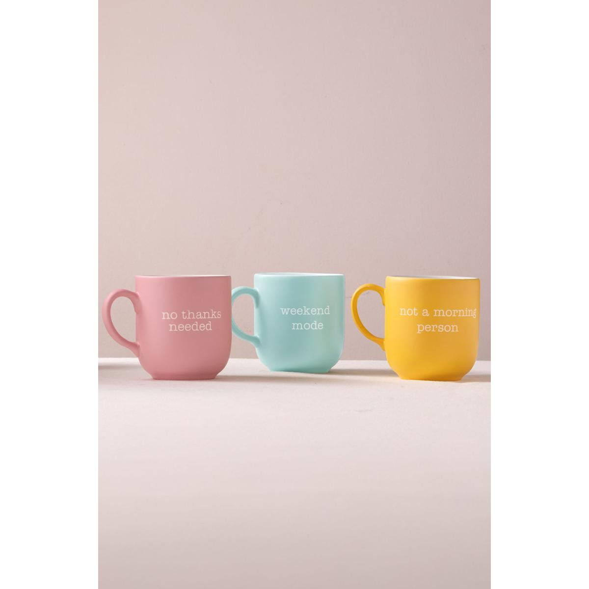 Rakle Mottolu Seramik 3'lü Kupa Seti 400 Cc