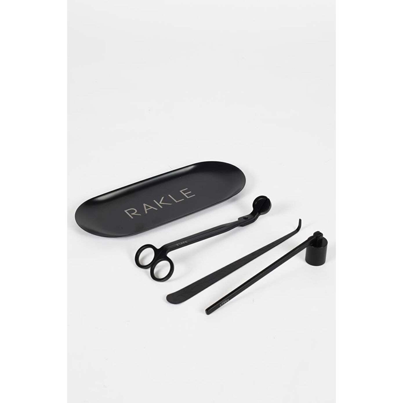 Rakle Mum Bakım Seti Makas Mum Söndürücü 4 Parça Siyah