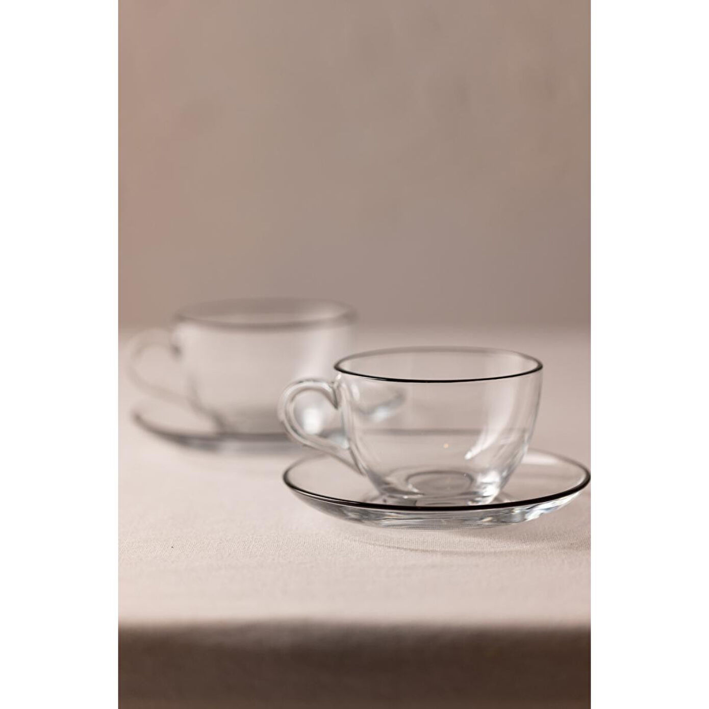 Uzun süreli kullanım için elde yıkanması tavsiye edilir. Hacim: 240 cc Renk: Siyah Rim Malzeme: %100 Cam Paket içeriği: 2 adet çay fincanı ve 2 adet fincan tabağı Cam Ölçüsü Fincan: Yükseklik: 6,4 cm Ağız: 9,1 cm Dip: 4 cm Genişlik: 11,6 cm Fincan Tabağı: Yükseklik: 6,4 cm Ağız: 9,1 cm Dip: 4 cm