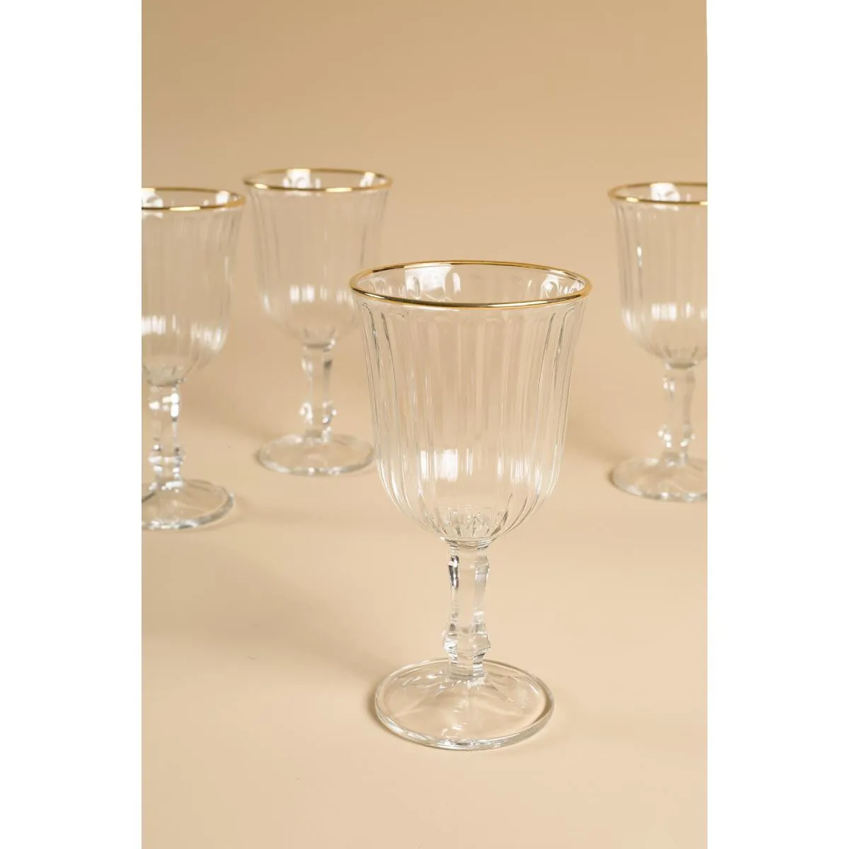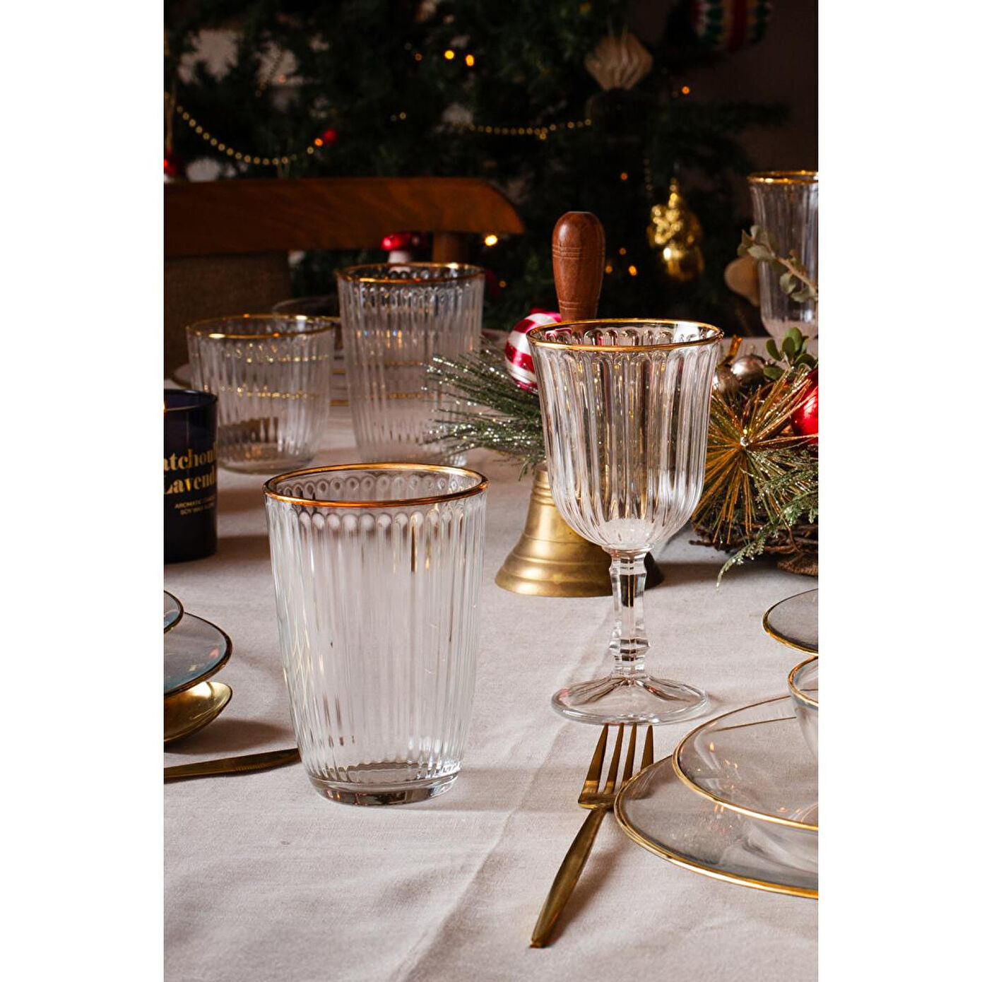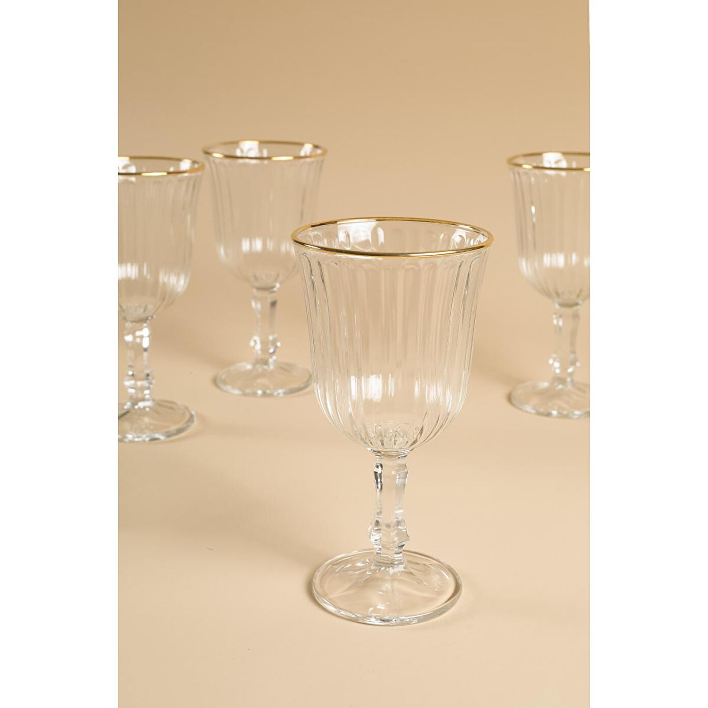 Uzun süreli kullanım için elde yıkanması tavsiye edilir. Hacim: 240 cc Renk: Altın Yaldız Malzeme: %100 Cam Paket içeriği: 4 adet su kadehi Cam Ölçüsü Yükseklik: 15,9 cm Ağız: 8,2 cm Dip: 6,6 cm