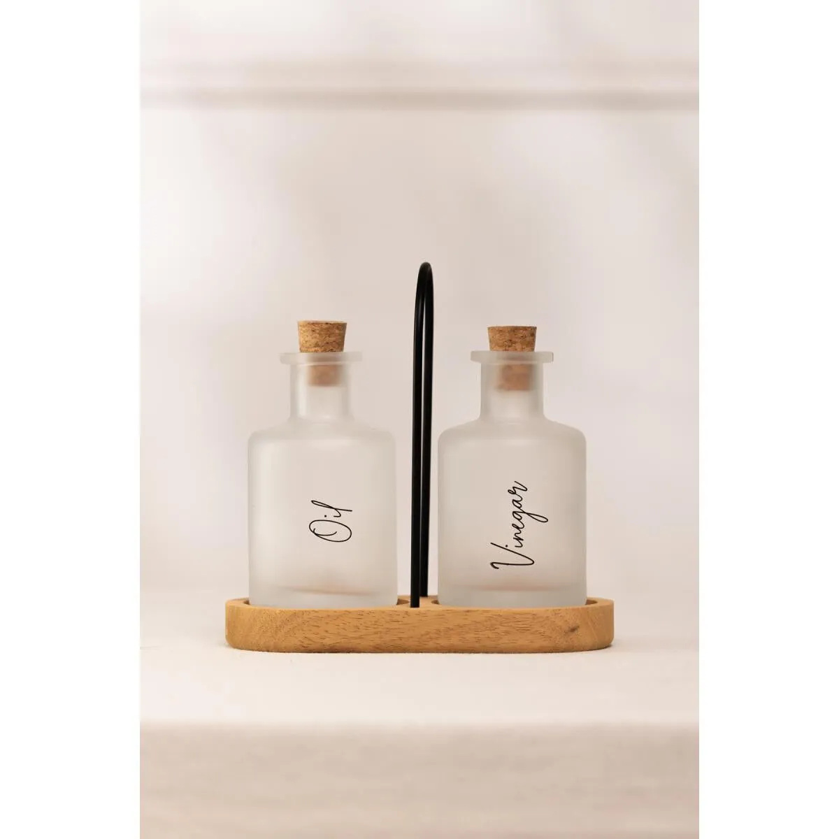 Uzun süreli kullanım için elde yıkanması tavsiye edilir. Hacim: 200 cc Renk: SablajMalzeme: %100 Cam / Bambu Paket içeriği: 1 adet yağlık, 1 adet sirkelik, 1 adet mantar tıpa kapak ve 1 adet metal kulplu oval tabla Cam Ölçüsü Yükseklik: 12 cm Ağız: 2 cm Dip: 6,8 cm Genişlik: 6,7 cm