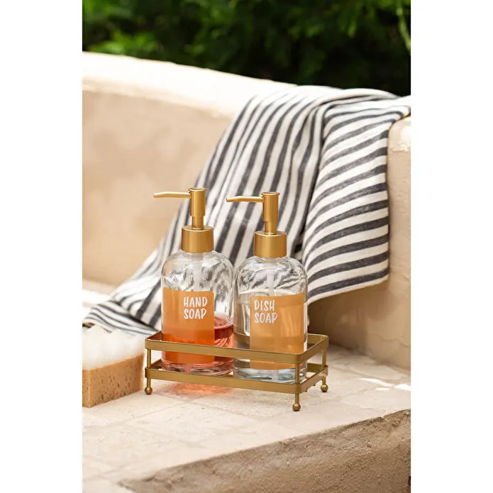 Uzun süreli kullanım için elde yıkanması tavsiye edilir. Hacim: 420 cc Renk: Şeffaf Malzeme: %100 Cam Paket içeriği: 2 adet sıvı sabunluk, 2 adet gold pompa ve 1 adet gold metal kare stand Cam Ölçüsü Yükseklik: 14 cm Ağız: 2,4 cm Dip: 7,3 cm Genişlik: 7,7 cm