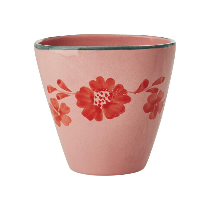 Rice El Yapımı Oval Seramik Kupa - Kırmızı Çiçek