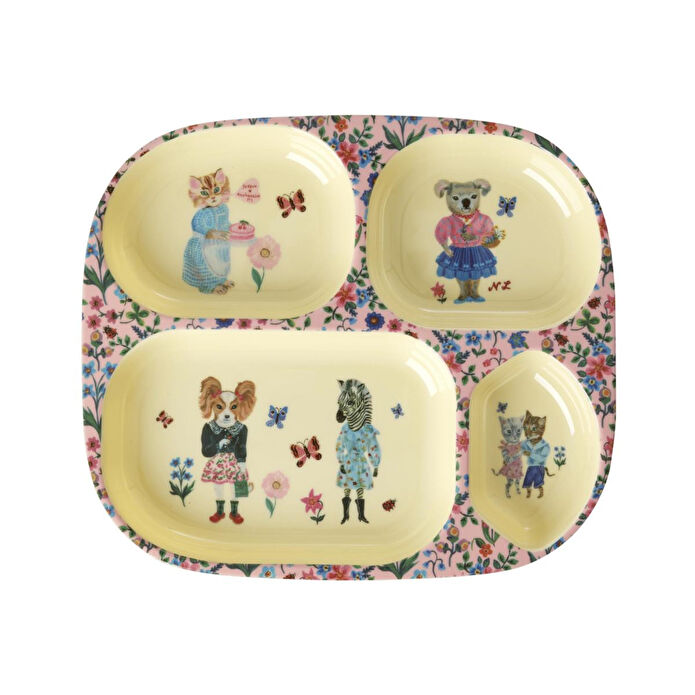 Rice Melamin 4 Bölmeli Mama Tabağı - Pembe Nathalie Lété