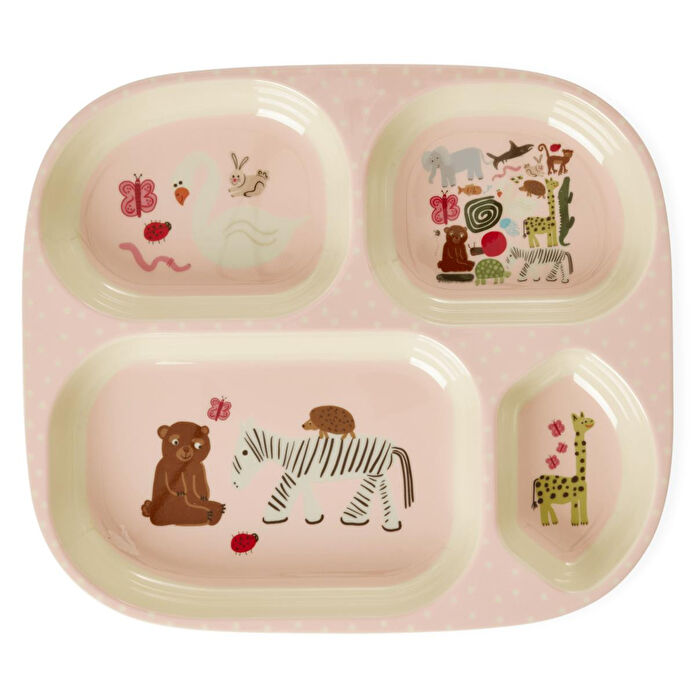 Rice Melamin 4 Bölmeli Mama Tabağı - Pembe Vahşi Yaşam