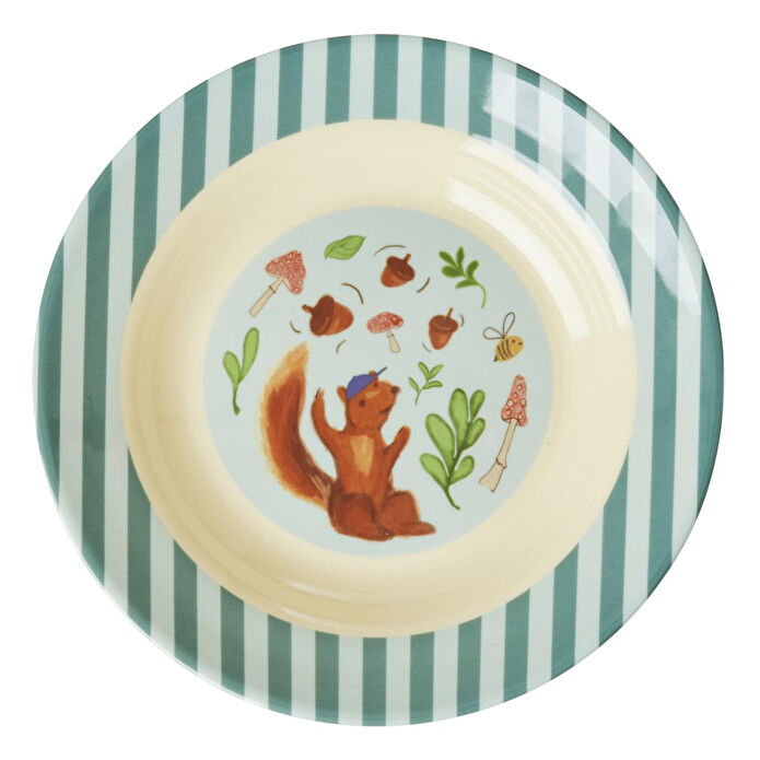 Rice Melamin Çocuk Çukur Tabak - Yeşil Mutlu Orman